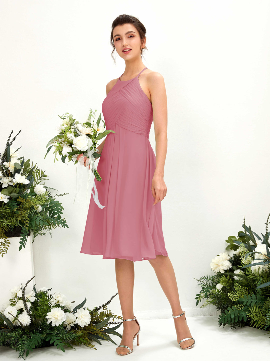 Desert Rose Chiffon A-Line Round Neck Strappy Back Dress