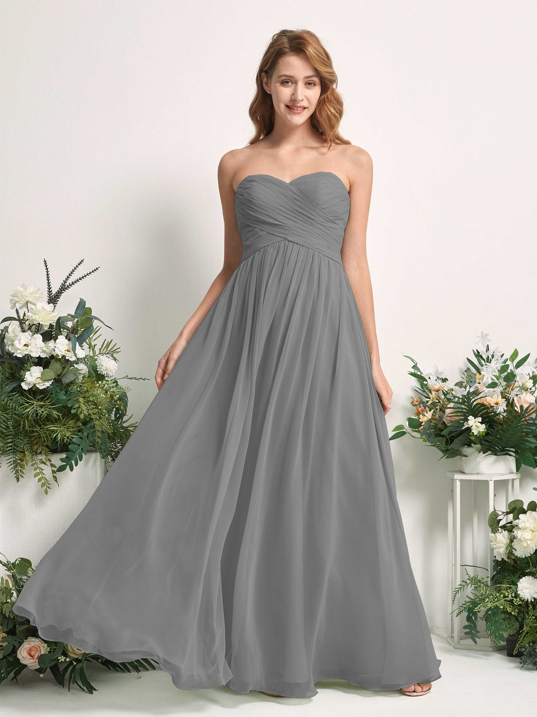 Carlyna Elma A-Line Steel Gray Bridesmaid Dress Maxi Sleeveless Sweetheart Dress Front View