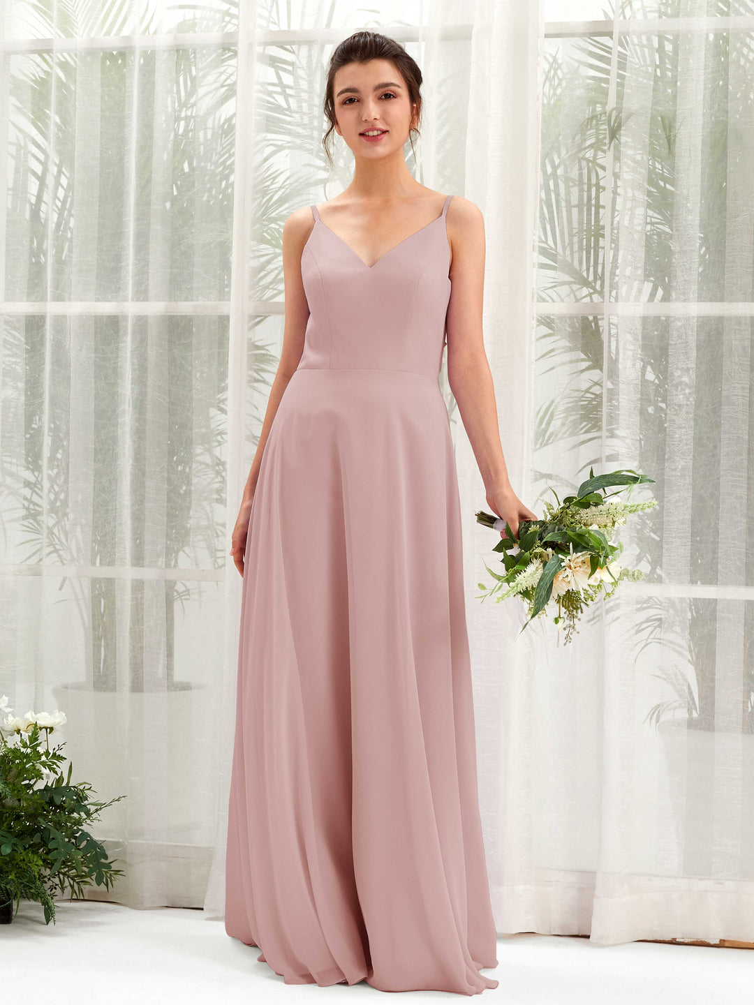Dusty Rose Chiffon A-Line V-Neck Open Back Maxi Dress