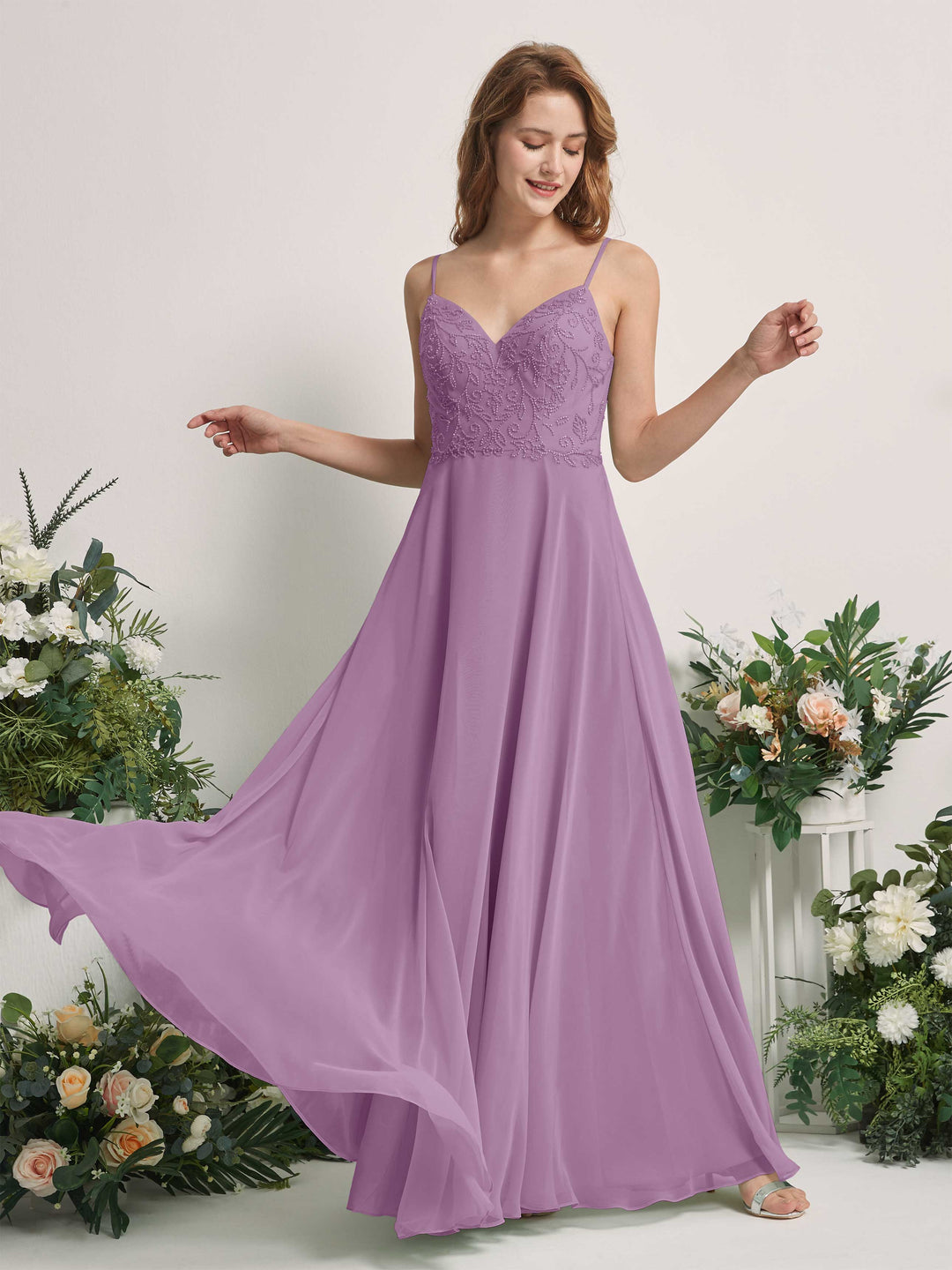 Orchid Mist Chiffon A-Line V-Neck Strappy Back Maxi Dress
