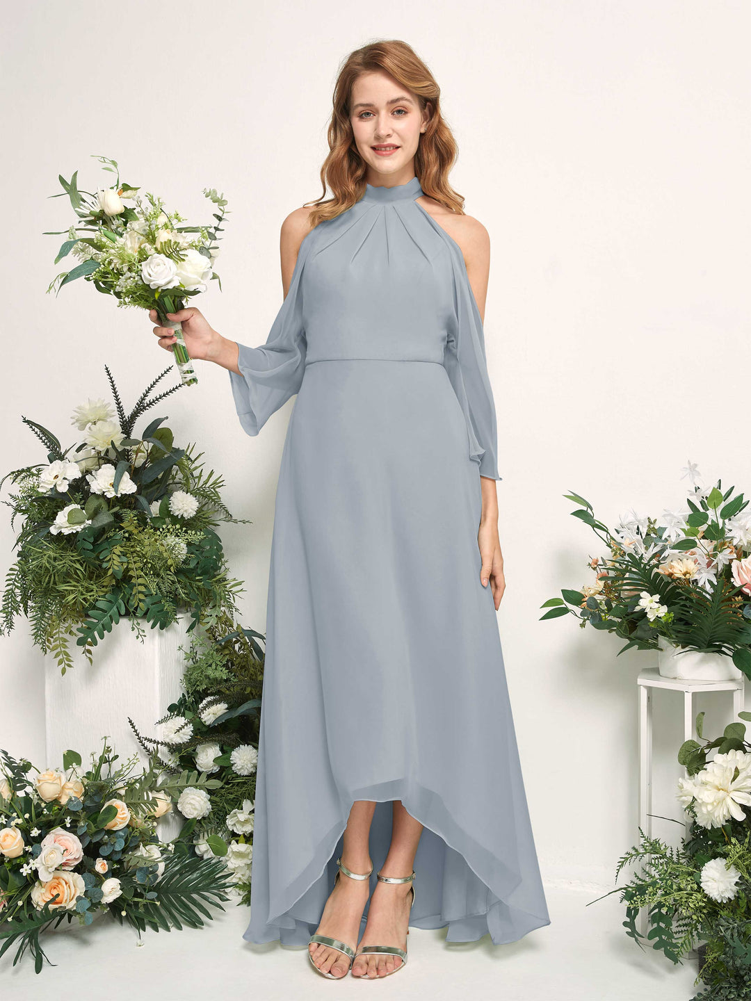 Dusty Blue-Upgrade Chiffon A-Line Round Neck Maxi Dress