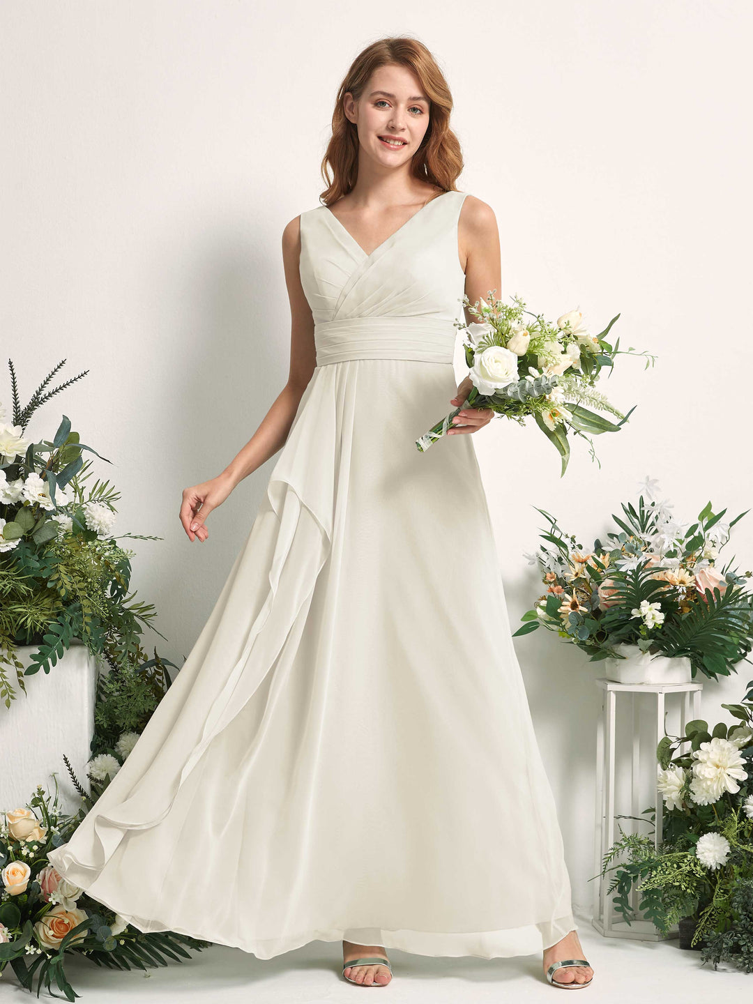 Ivory Chiffon A-Line V-Neck Maxi Dress