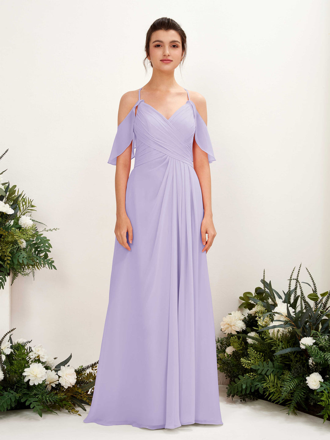 Lilac Chiffon A-Line Off the Shoulder Strappy Back Maxi Dress