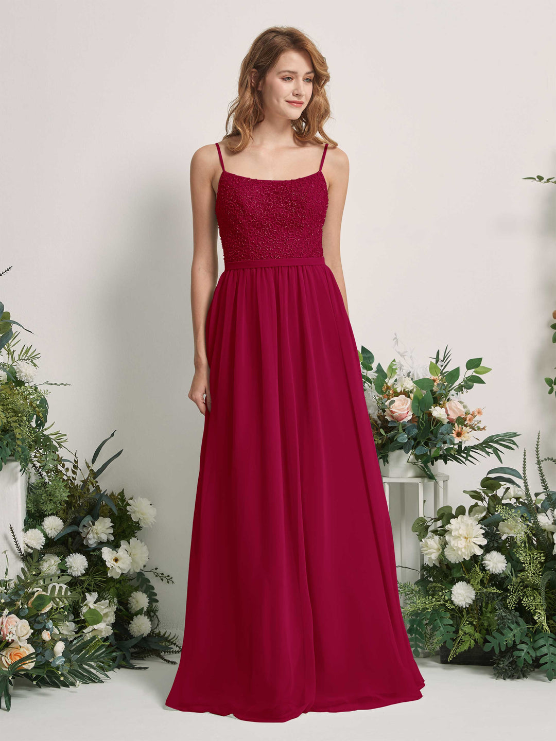 Jester Red Chiffon A-Line Scoop Neck Strappy Back Maxi Dress