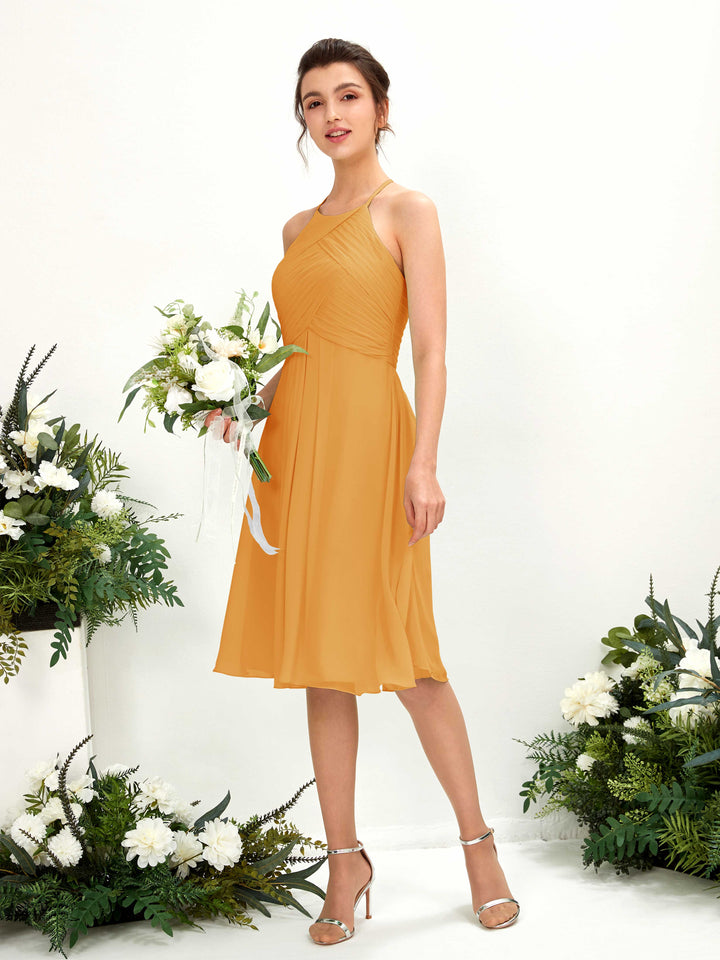 Carlyna Davina A-Line Mango Bridesmaid Dress Knee-Length Sleeveless Round Neck Dress Front View