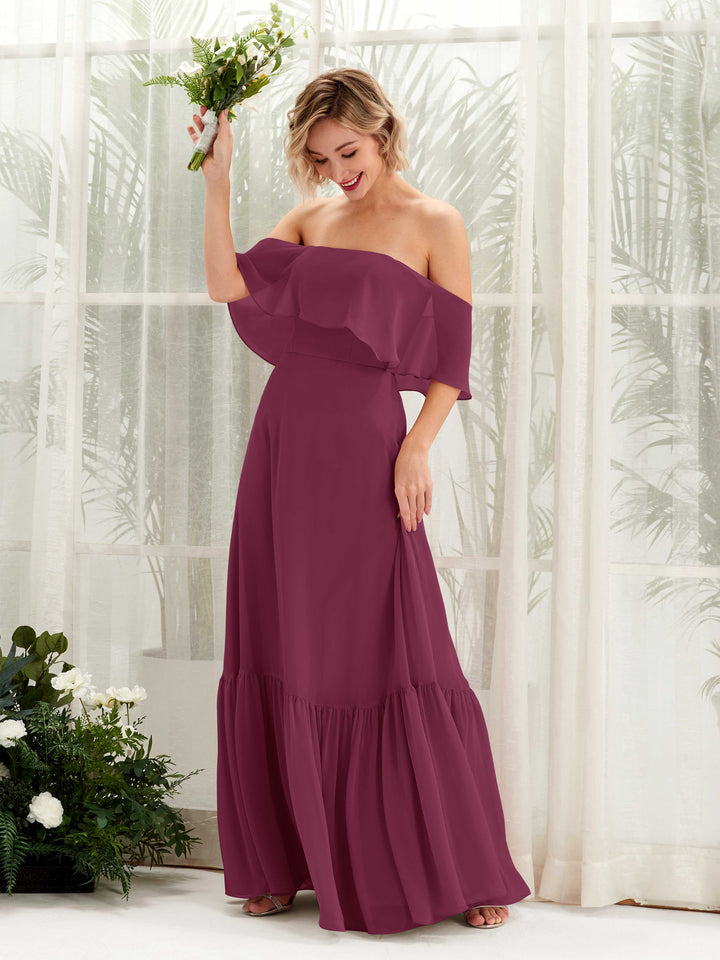 Chianti Chiffon A-Line Off the Shoulder Open Back Maxi Dress
