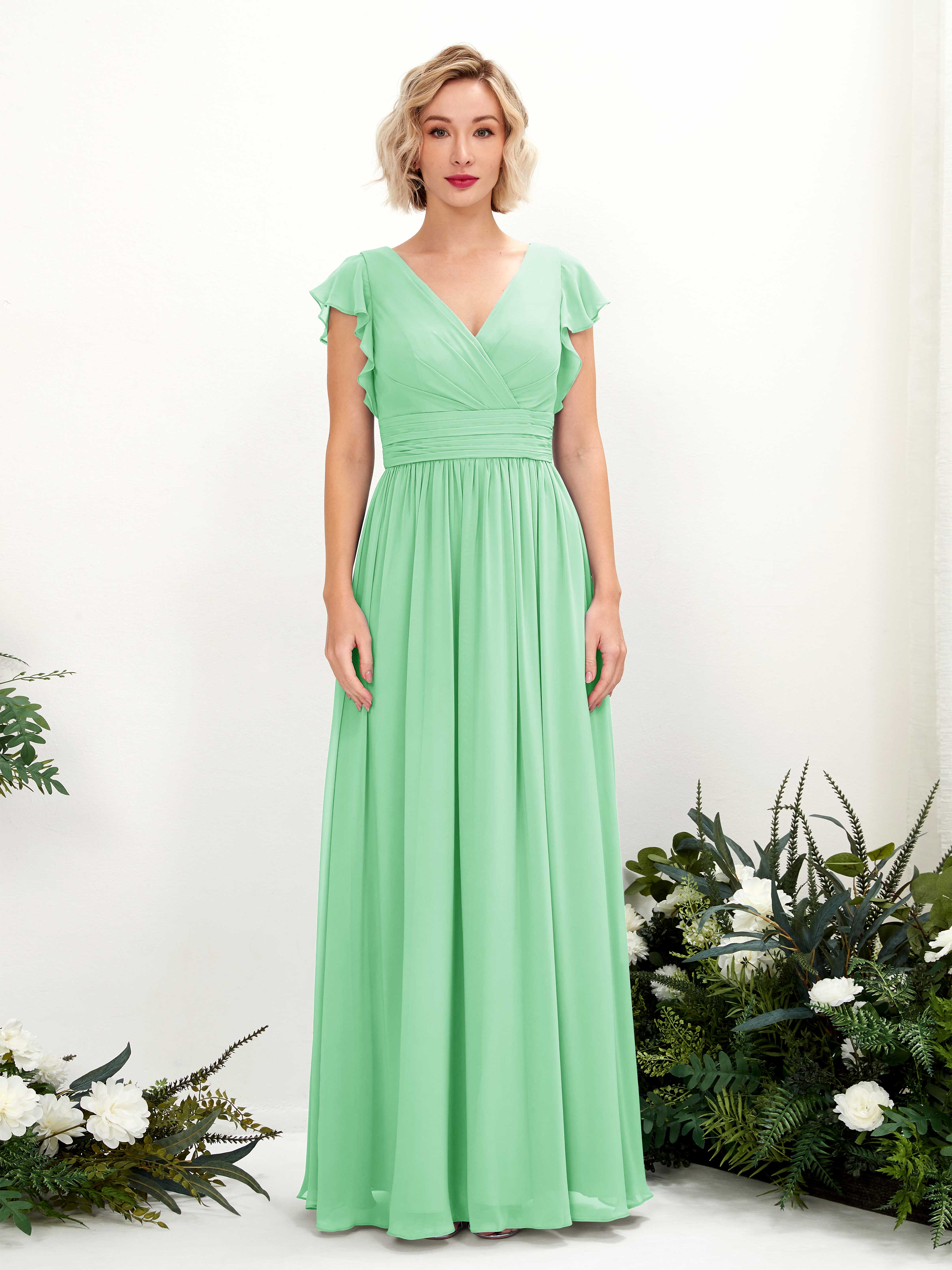 Carlyna Grino A-Line Mint Green Bridesmaid Dress Maxi Cap Sleeve V-Neck Dress Front View