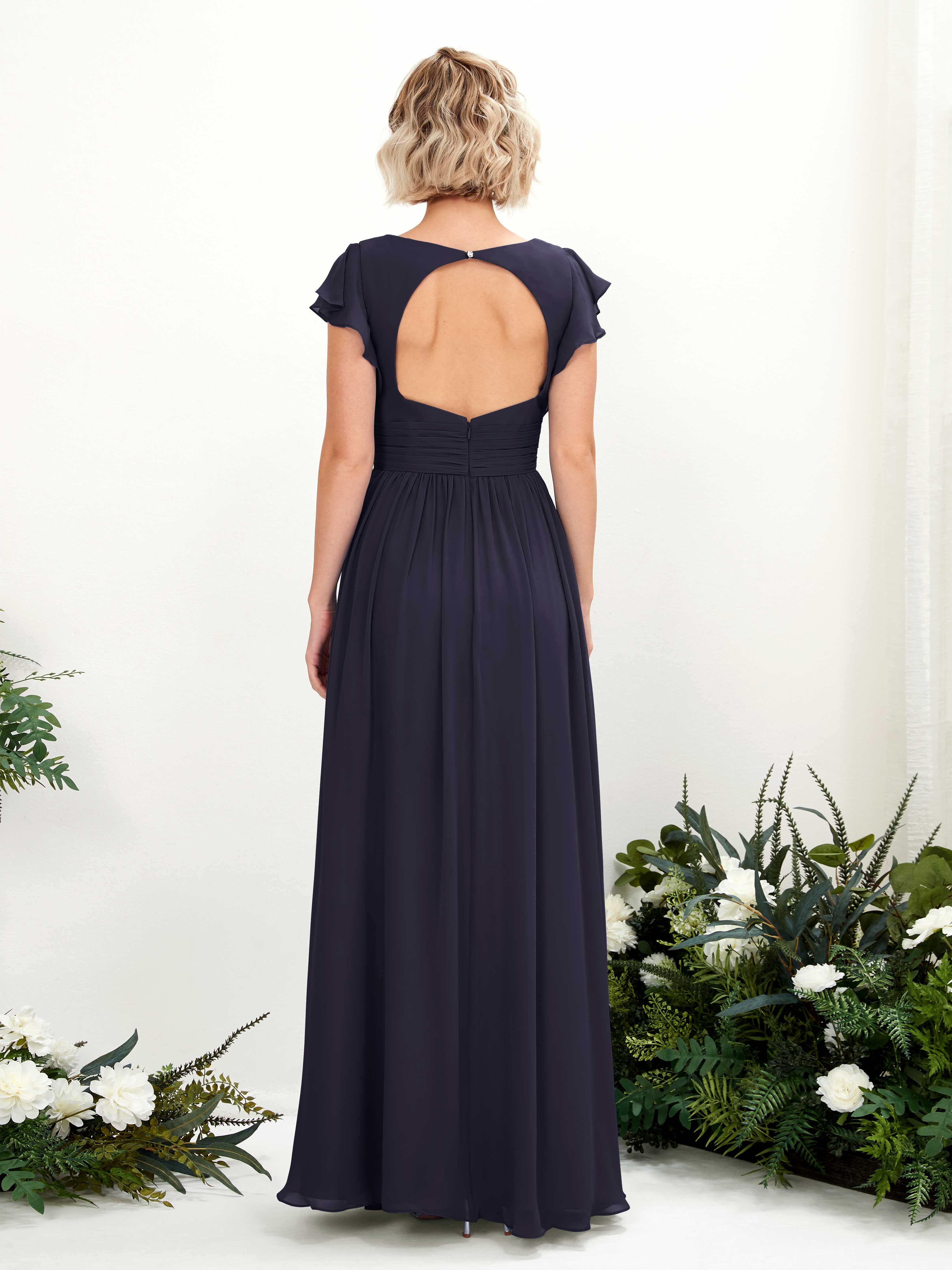Carlyna Grino A-Line Dark Navy Bridesmaid Dress Maxi Cap Sleeve V-Neck Dress Back View