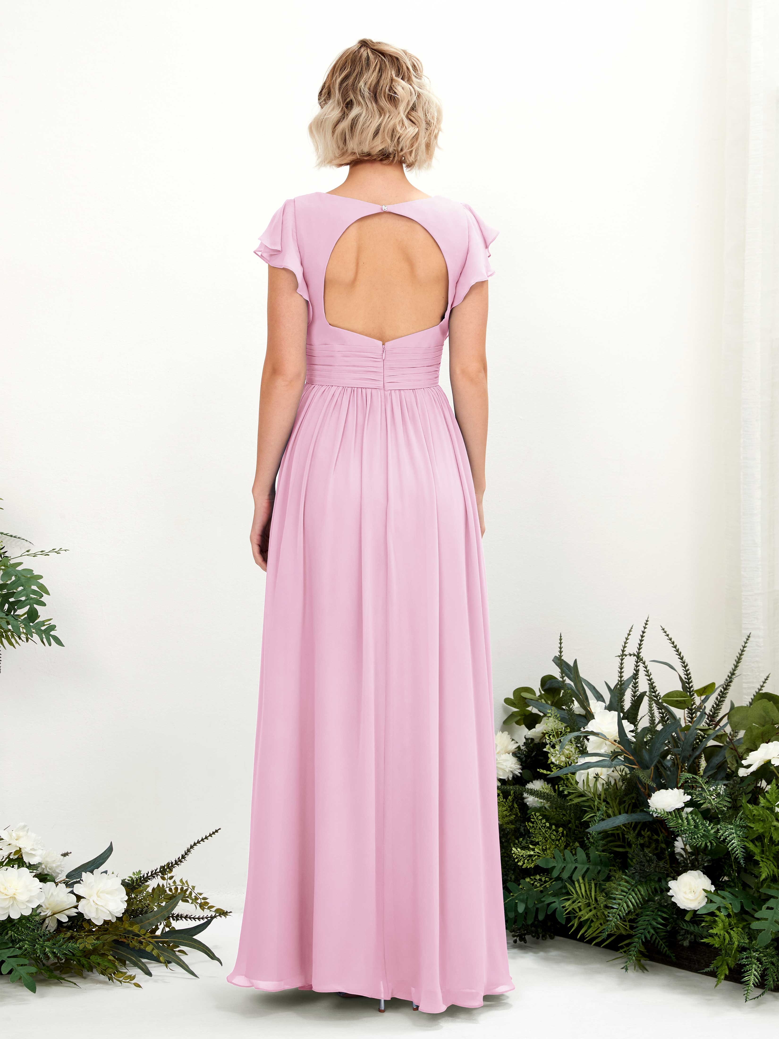 Carlyna Grino A-Line Ballet Pink Bridesmaid Dress Maxi Cap Sleeve V-Neck Dress Back View