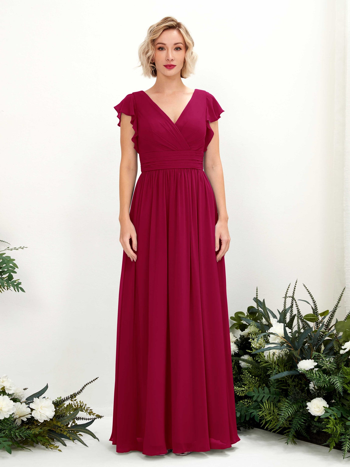 Carlyna Grino A-Line Chianti Bridesmaid Dress Maxi Cap Sleeve V-Neck Dress Front View