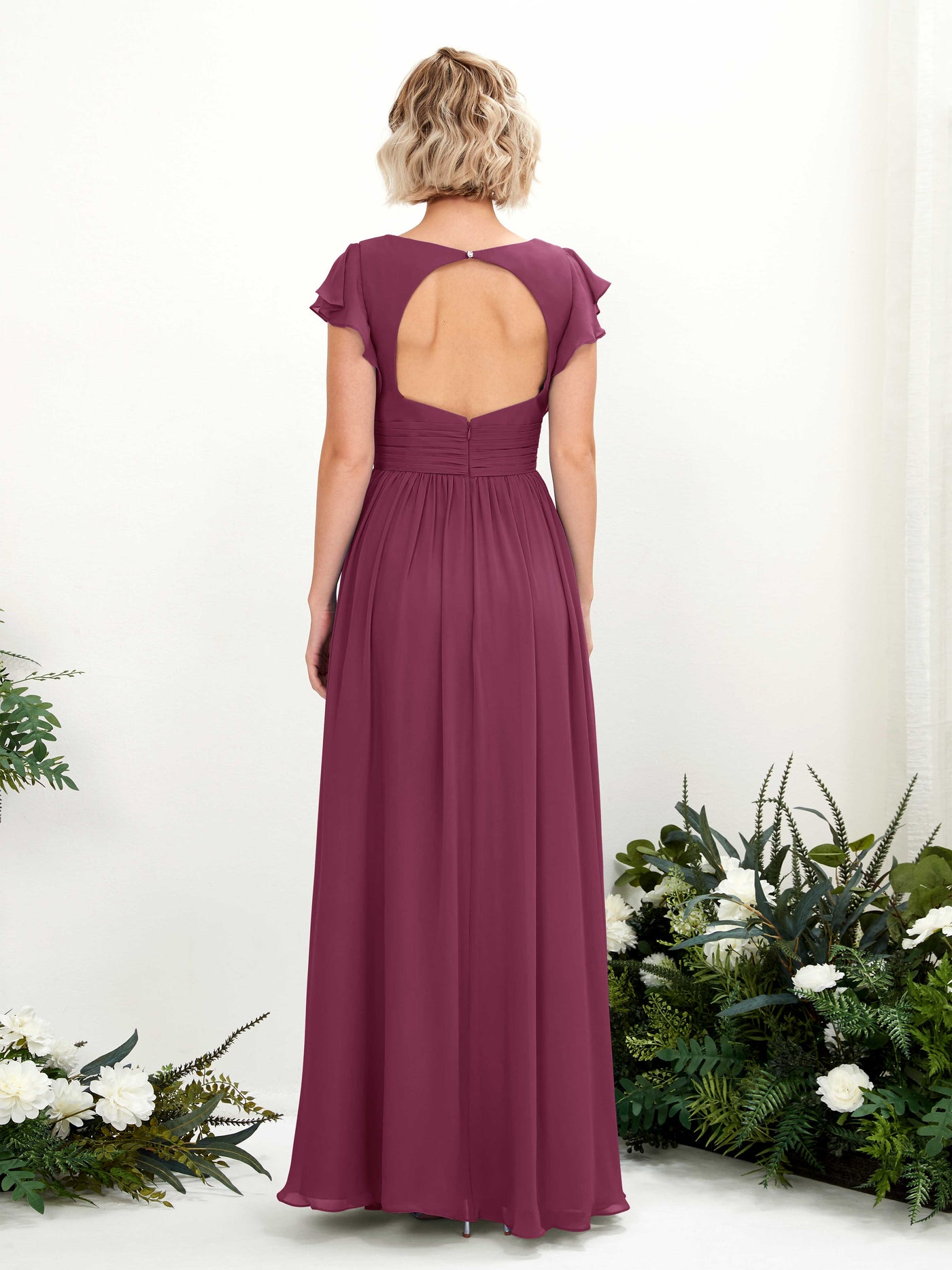 Carlyna Grino A-Line Chianti Bridesmaid Dress Maxi Cap Sleeve V-Neck Dress Back View