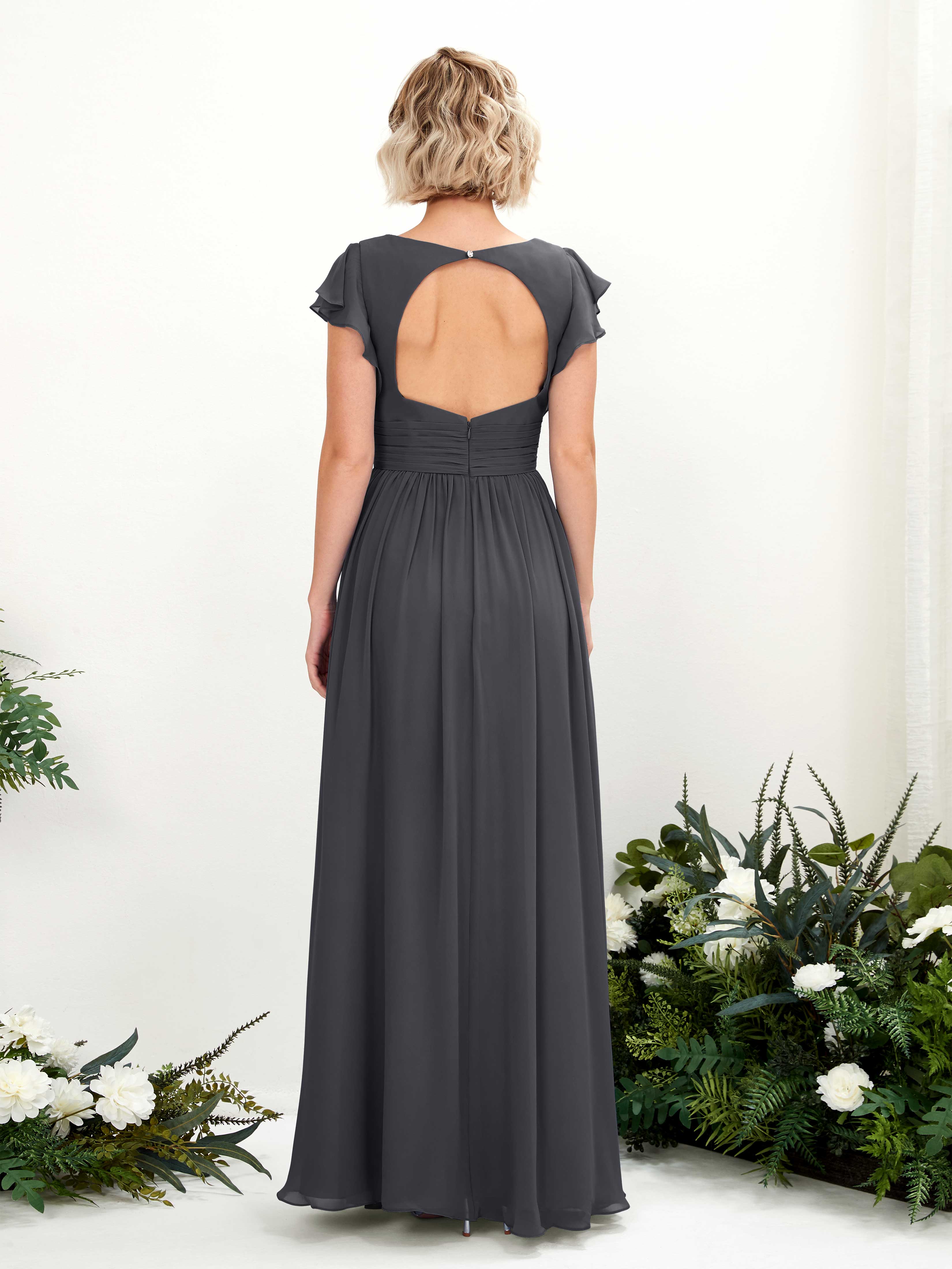 Carlyna Grino A-Line Steel Gray Bridesmaid Dress Maxi Cap Sleeve V-Neck Dress Back View