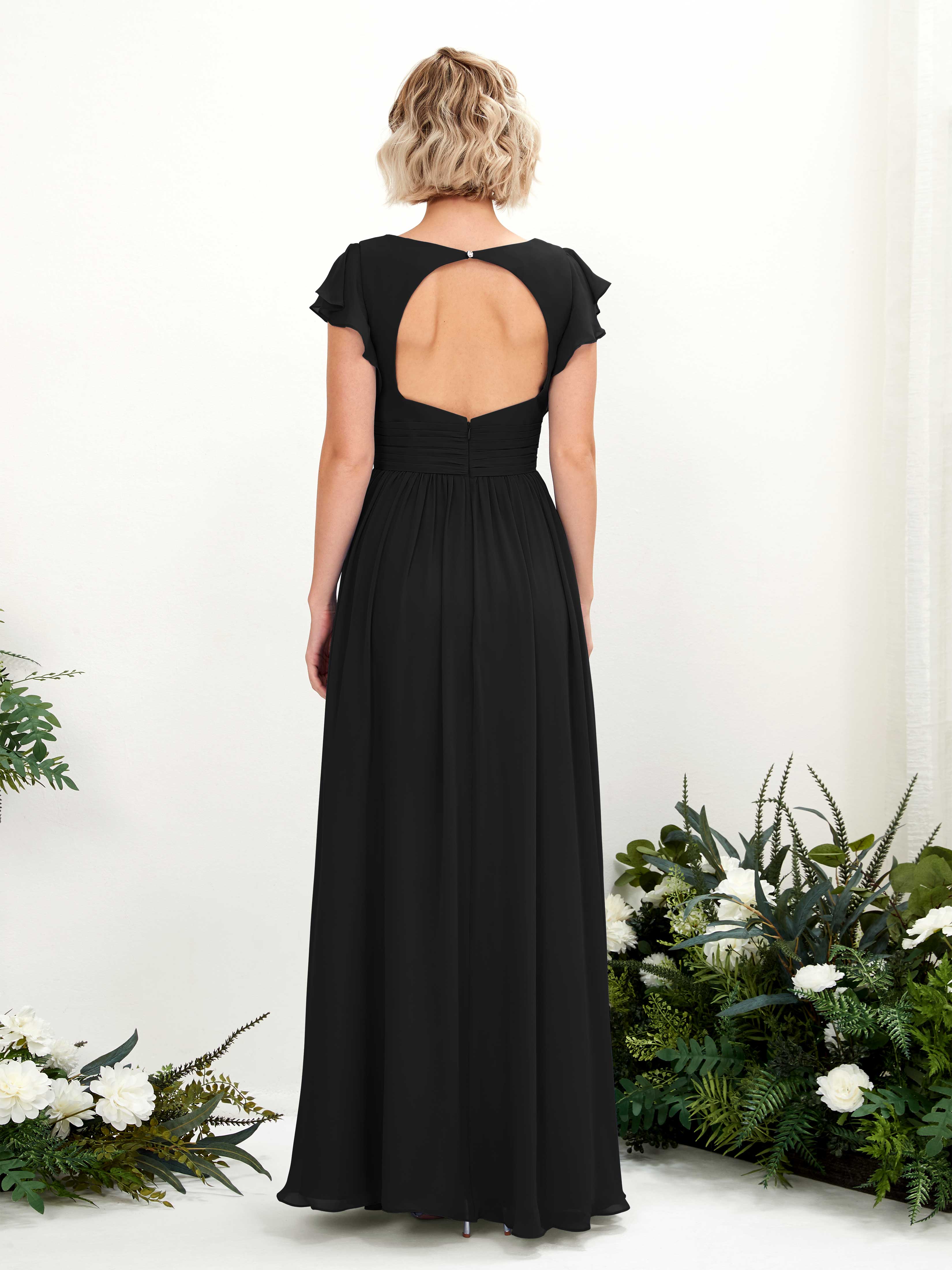 Carlyna Grino A-Line Black Bridesmaid Dress Maxi Cap Sleeve V-Neck Dress Back View