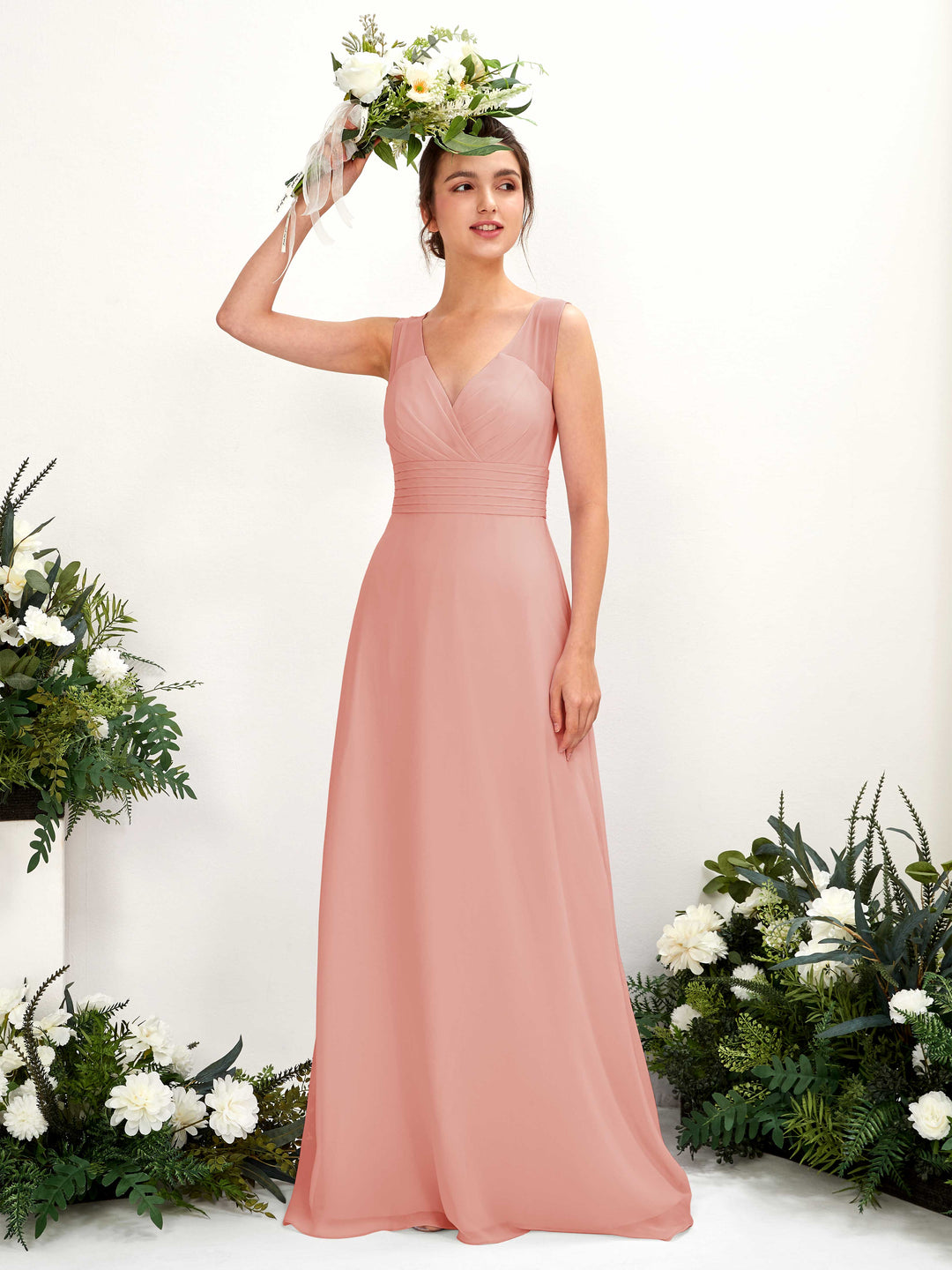 Champagne Rose Chiffon A-Line V-Neck Maxi Dress