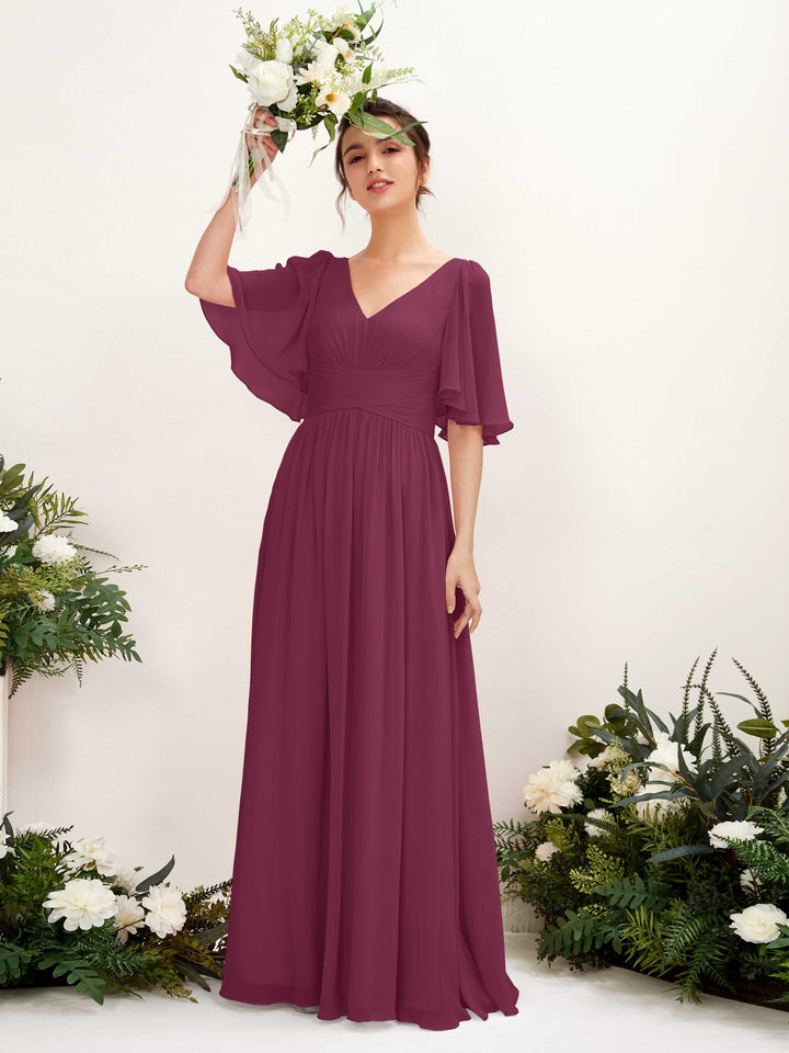 Chianti Chiffon A-Line V-Neck Maxi Dress