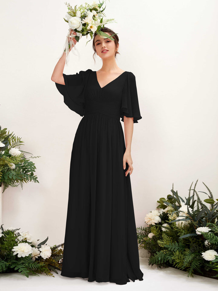 Black Chiffon A-Line V-Neck Maxi Dress