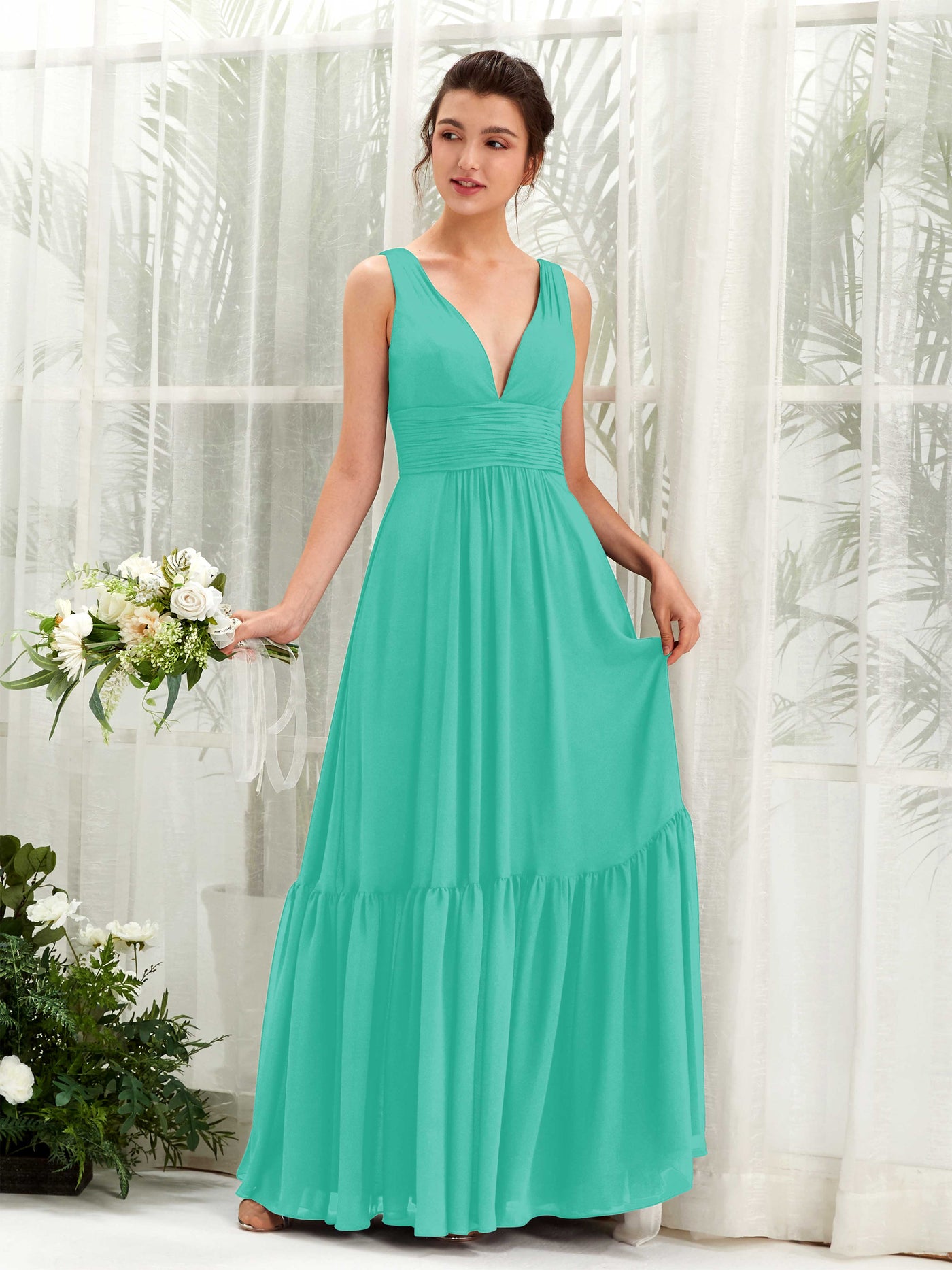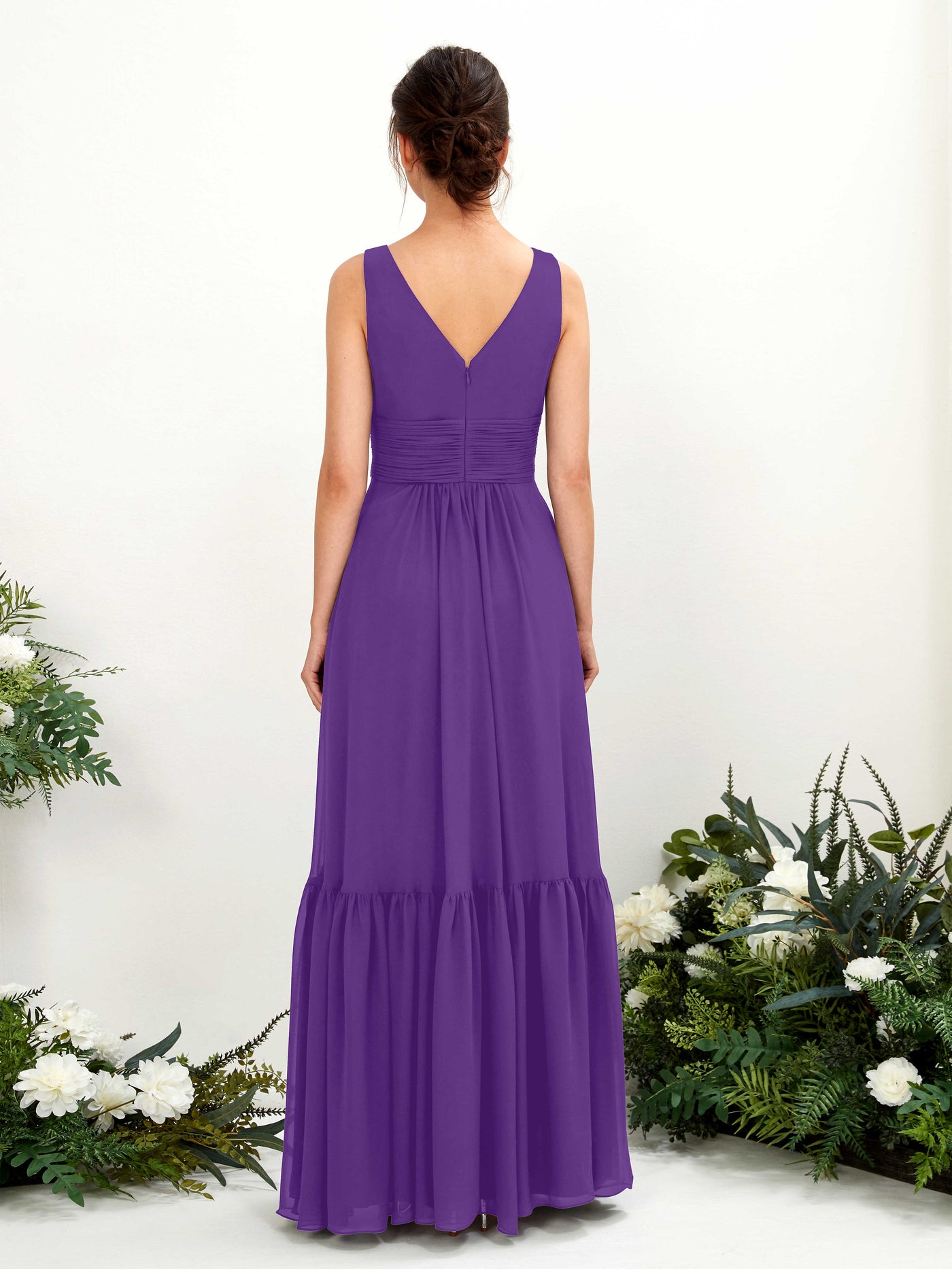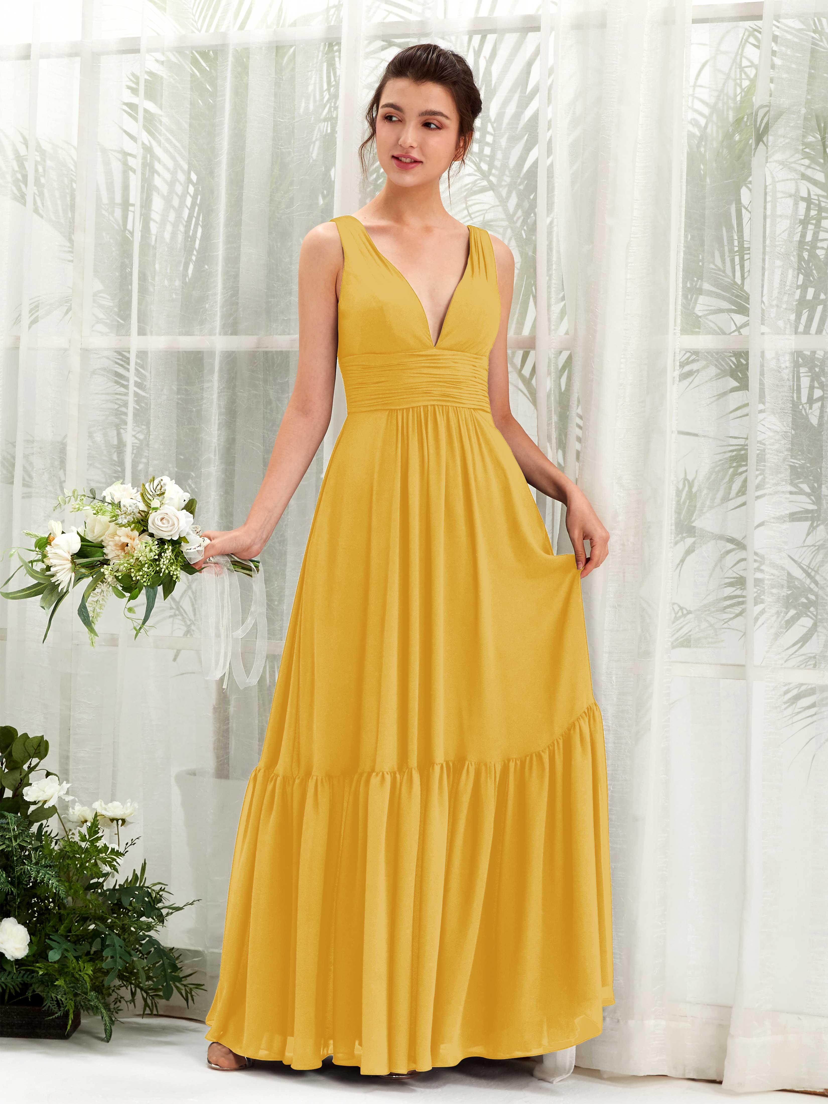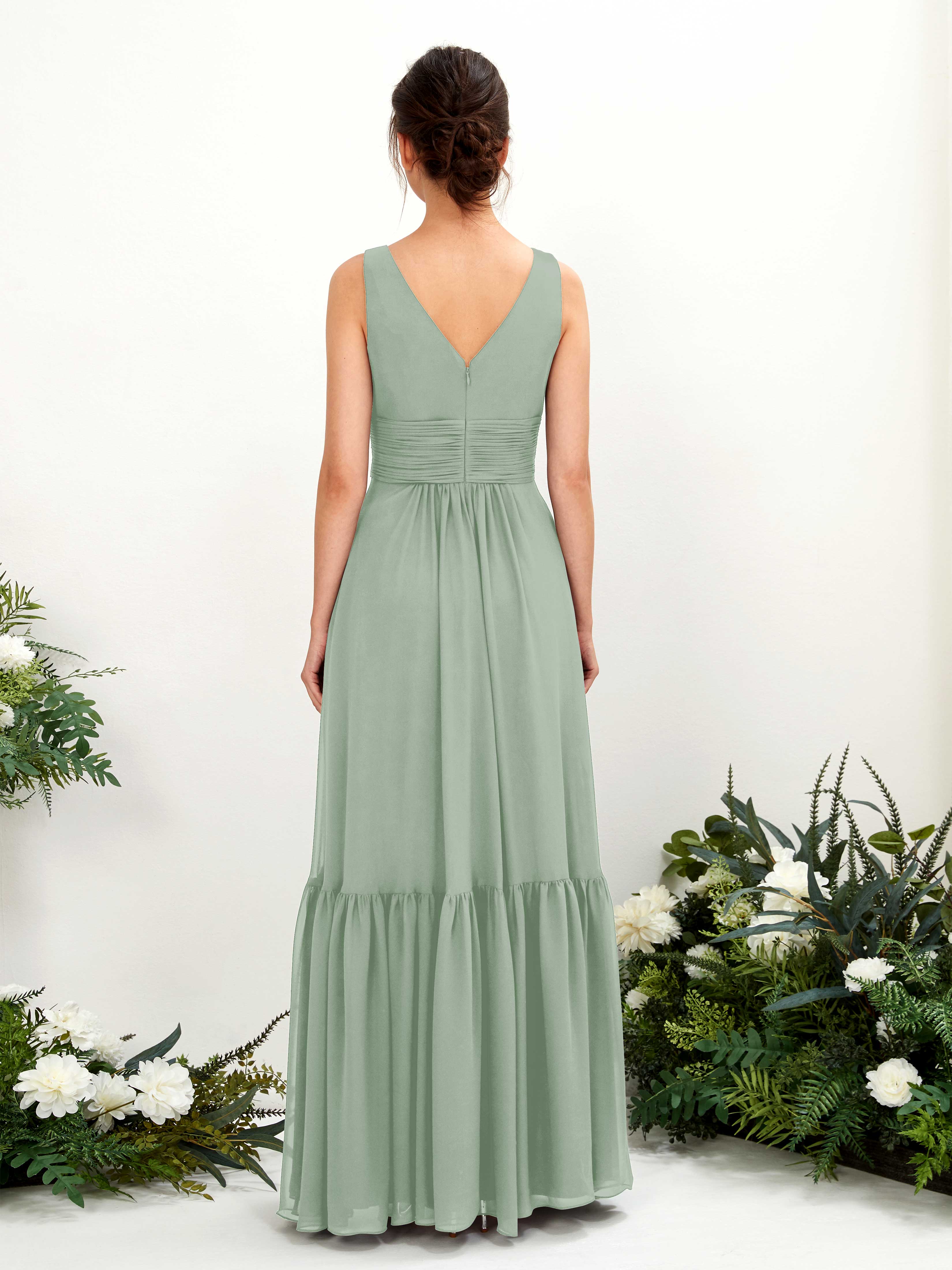 Black Chiffon A-Line V-Neck Maxi Dress