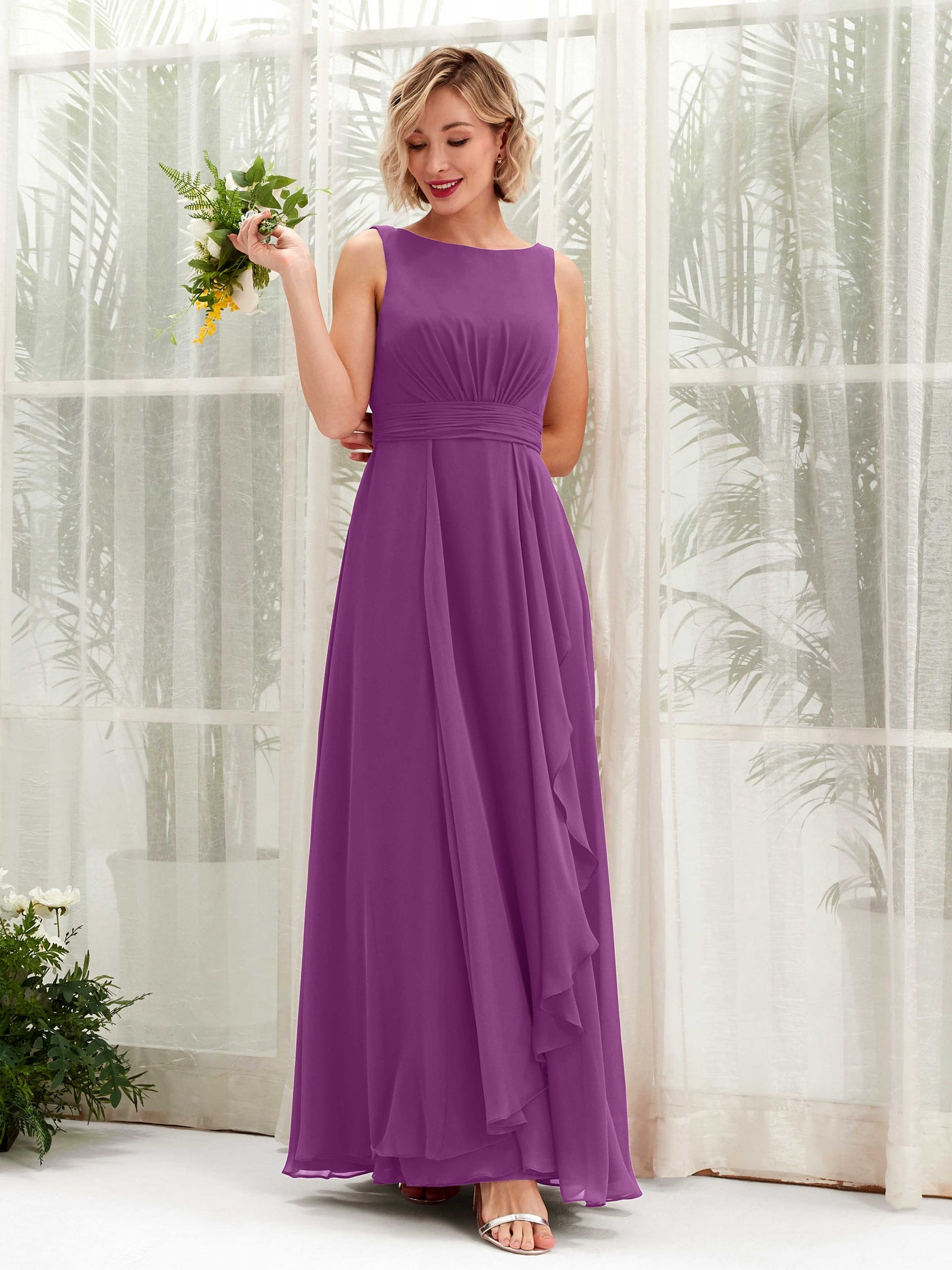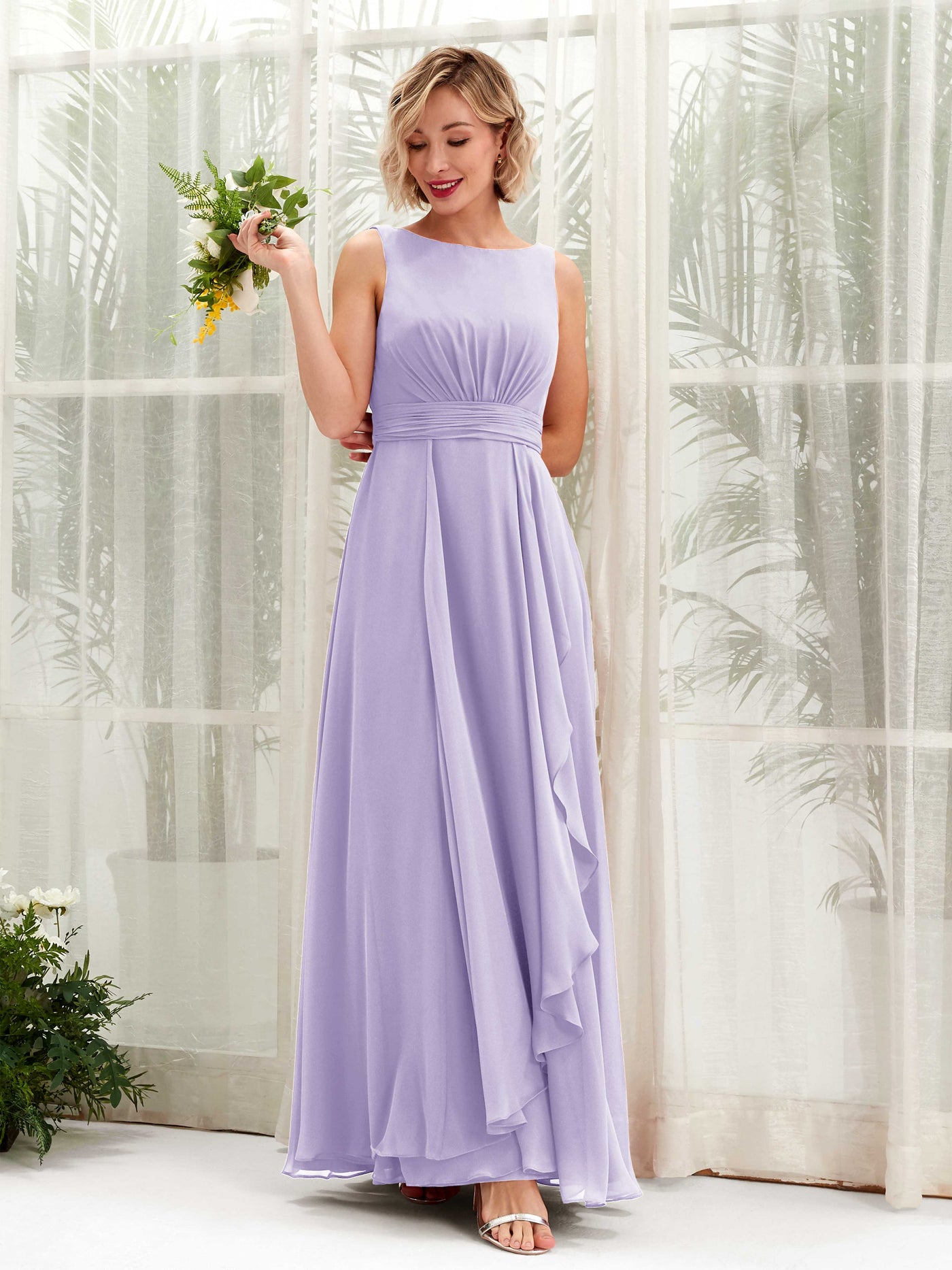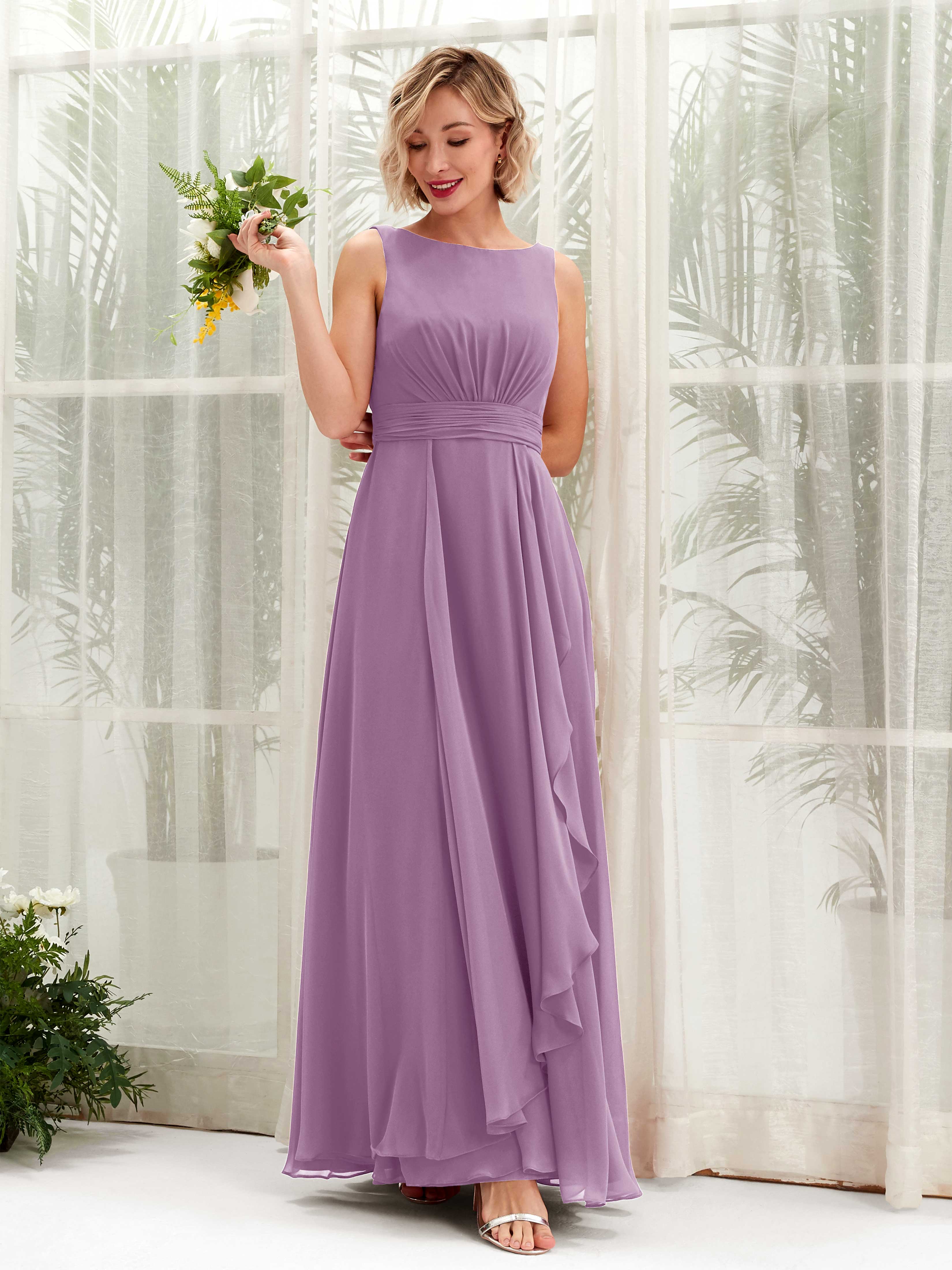 Dusty Lavender Chiffon A-Line Boat Neck Maxi Dress
