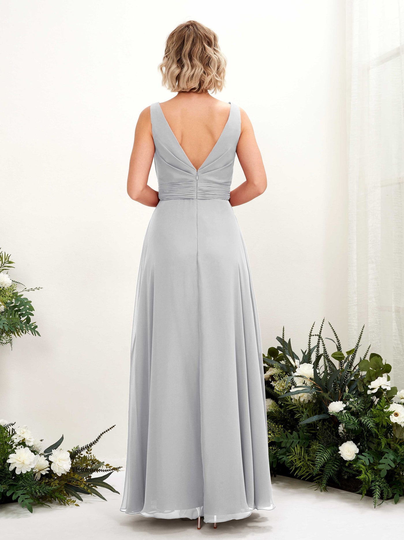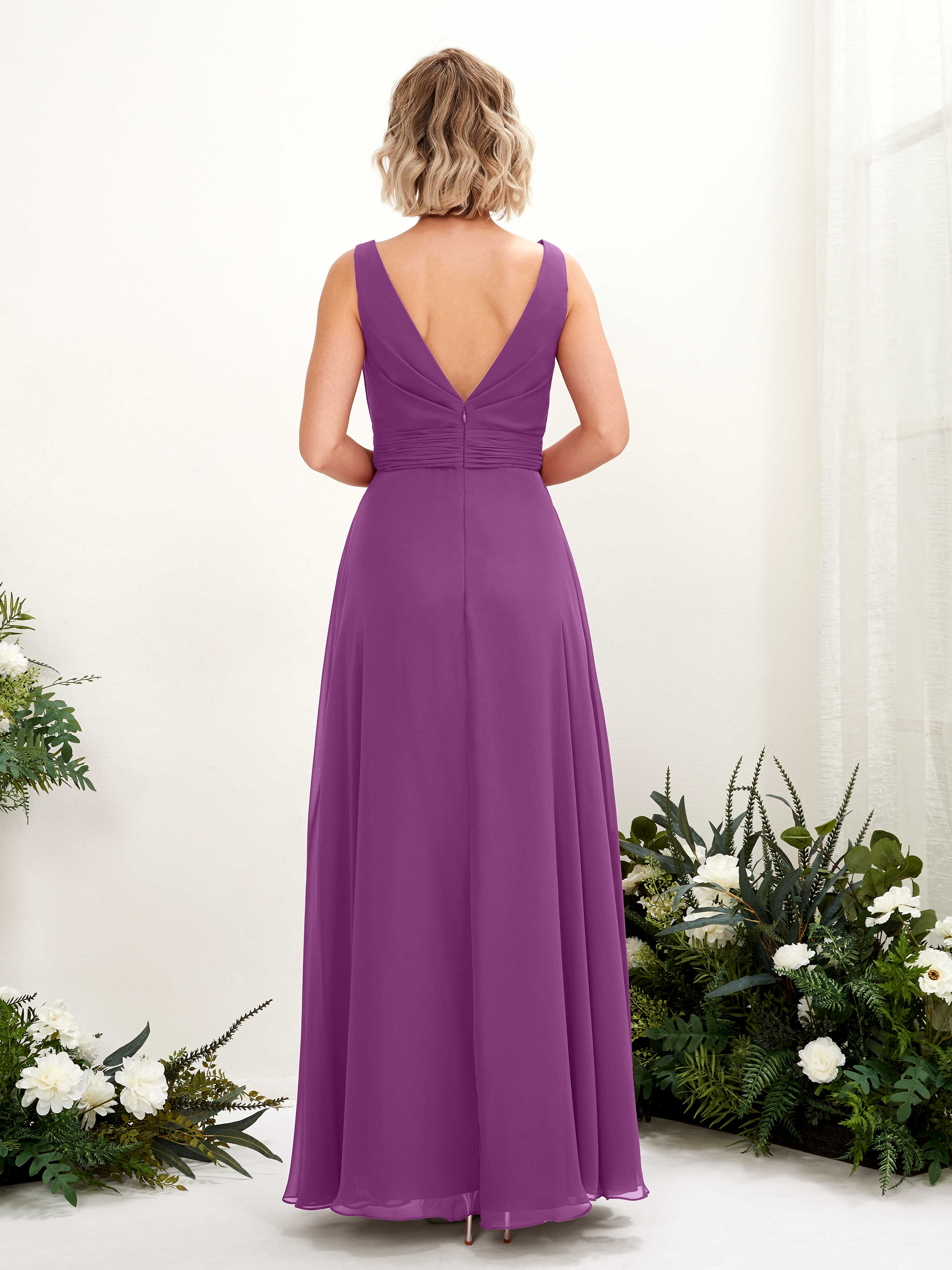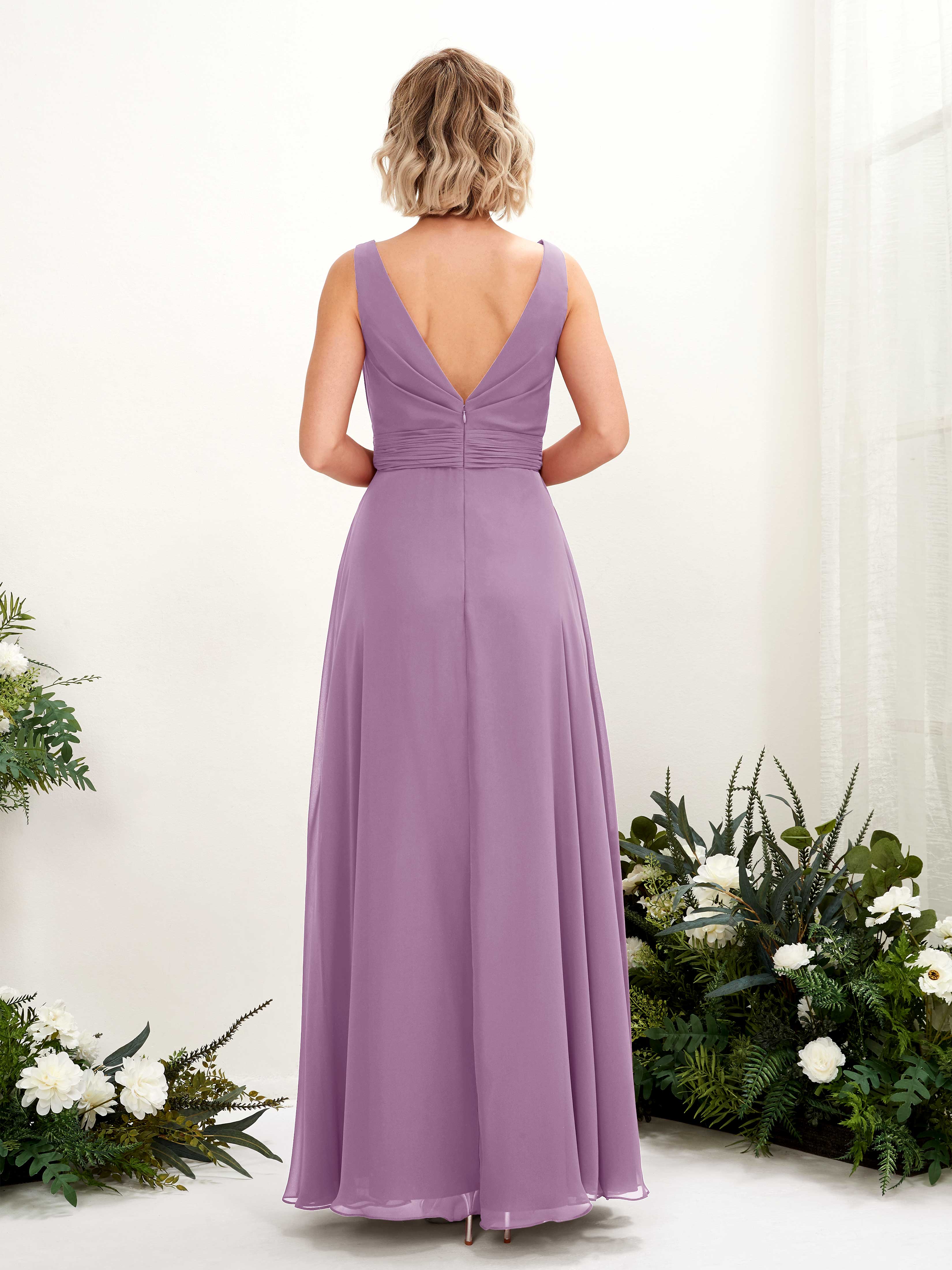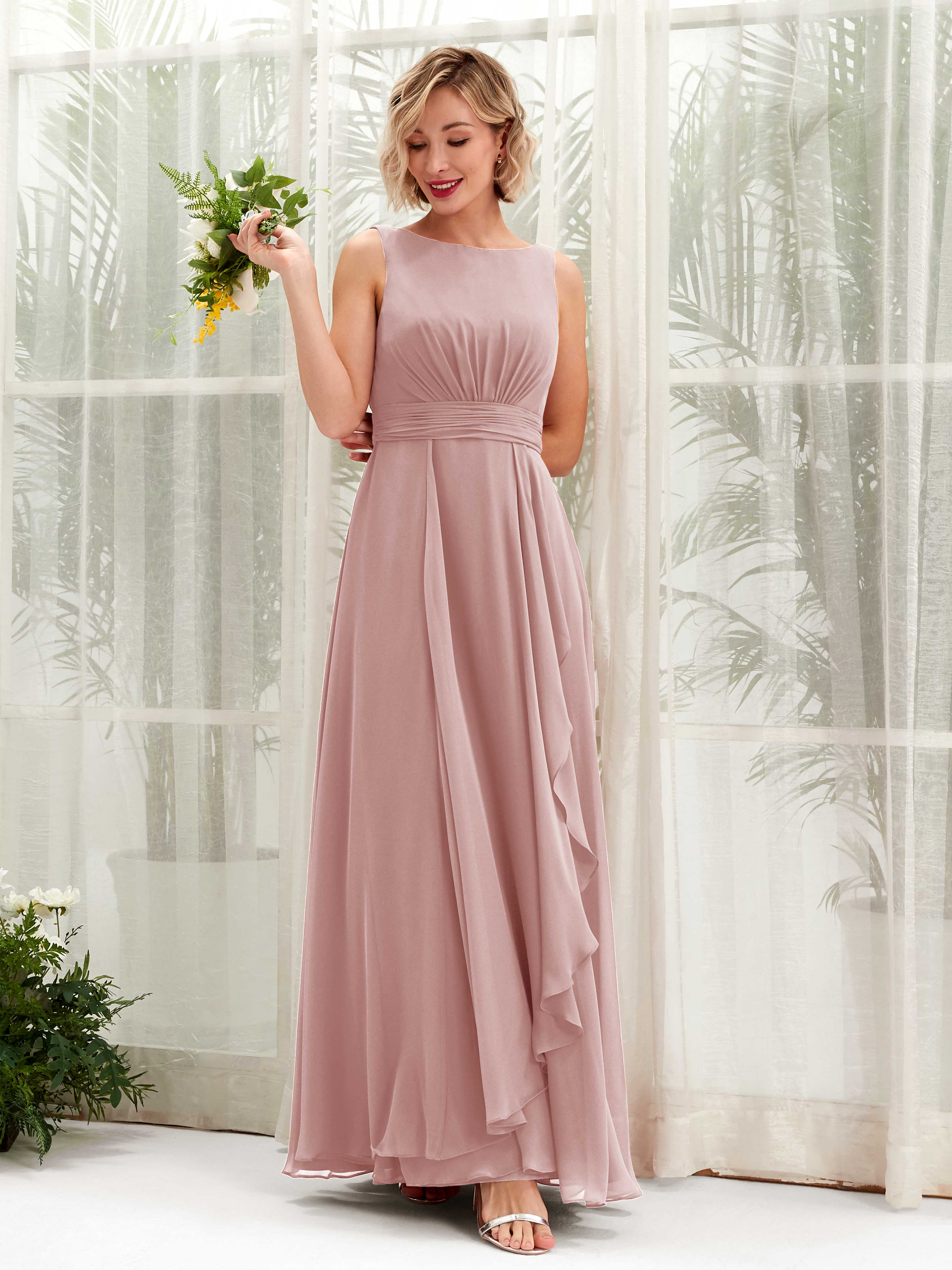Dusty Lavender Chiffon A-Line Boat Neck Maxi Dress