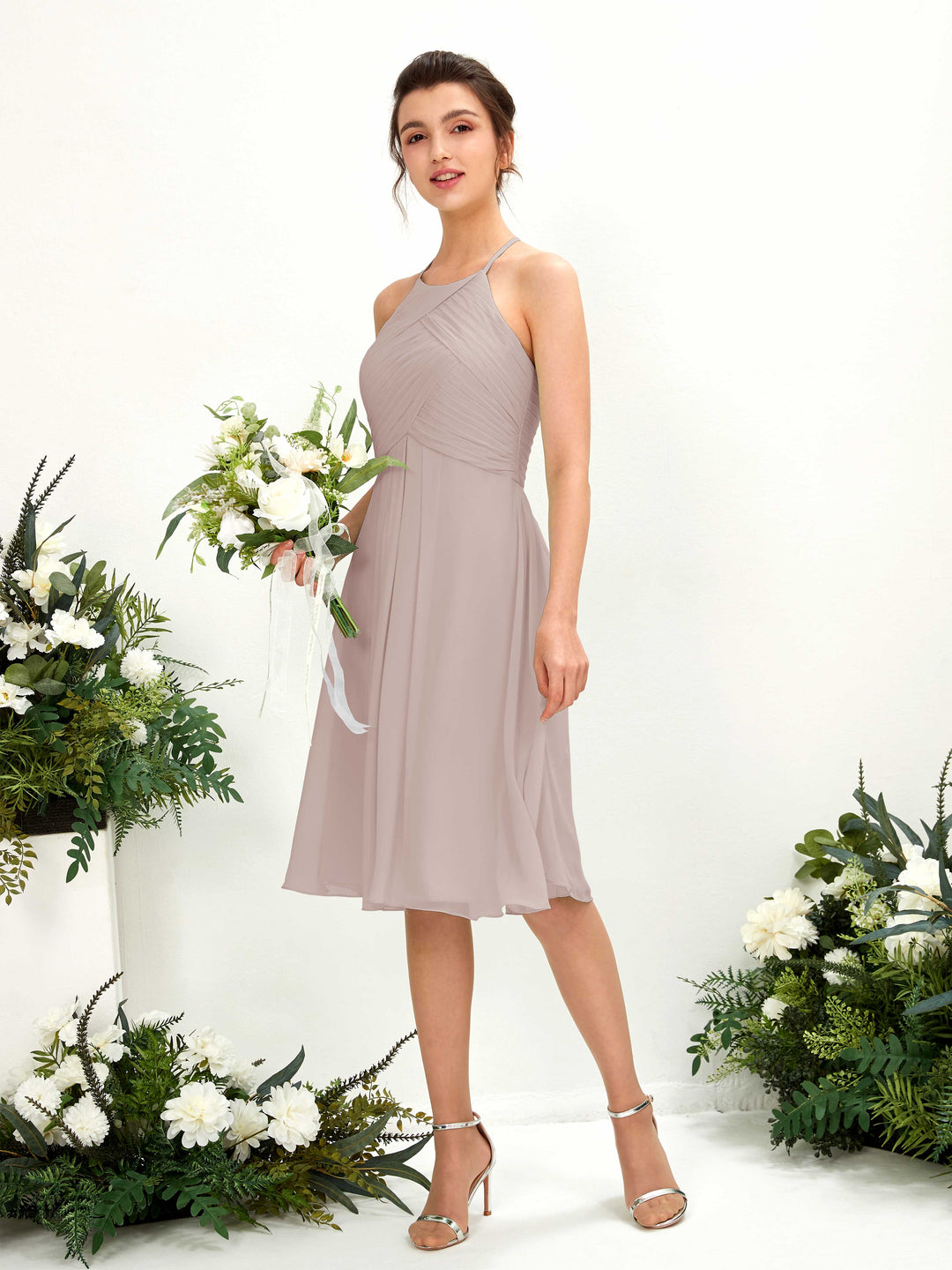 Taupe Chiffon A-Line Round Neck Strappy Back Dress