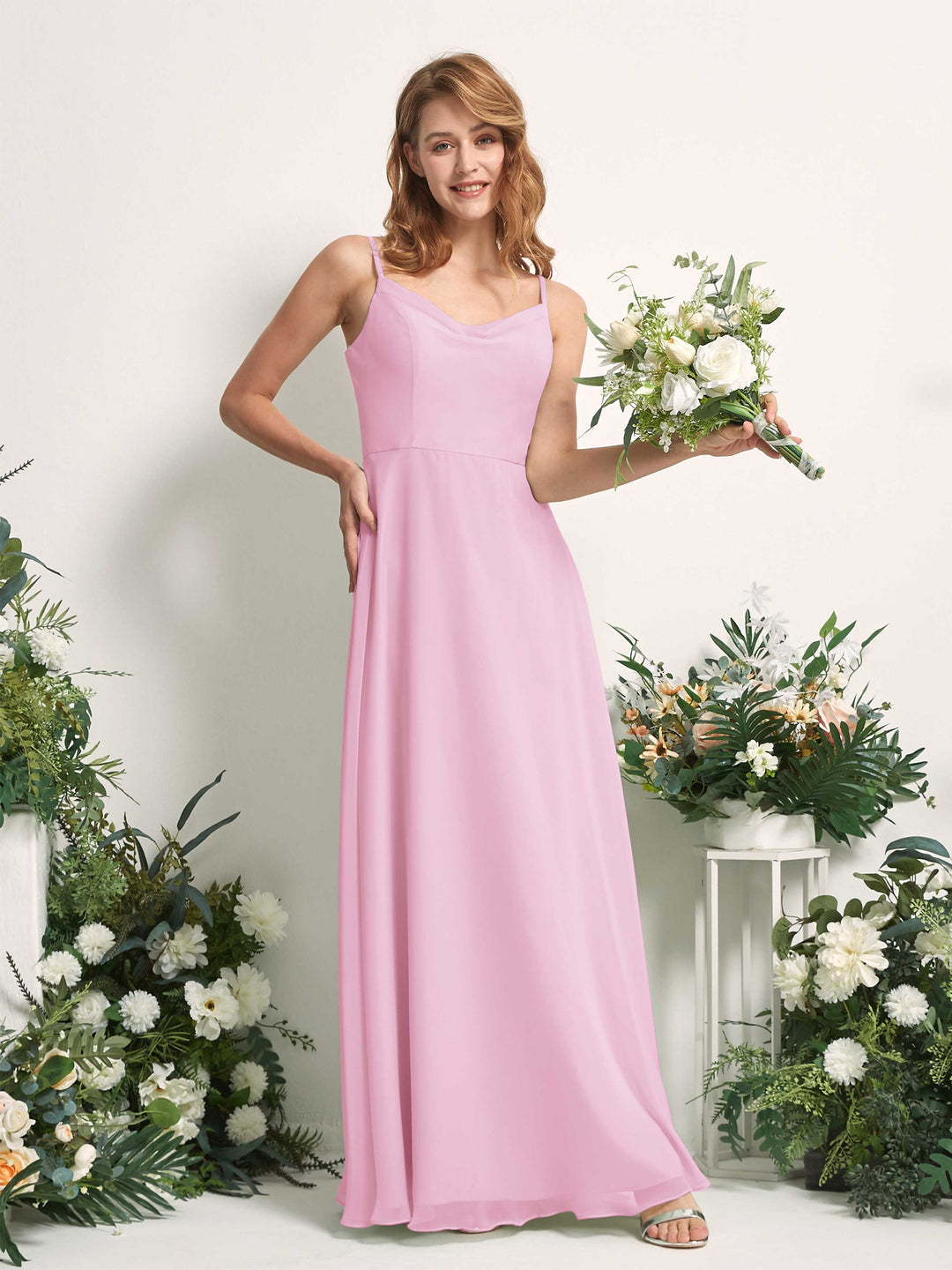 Candy Pink Chiffon A-Line V-Neck Maxi Dress