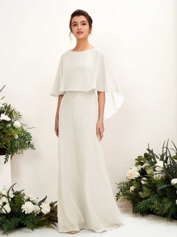 Ivory Chiffon Sheath Boat Neck Cape Maxi Dress