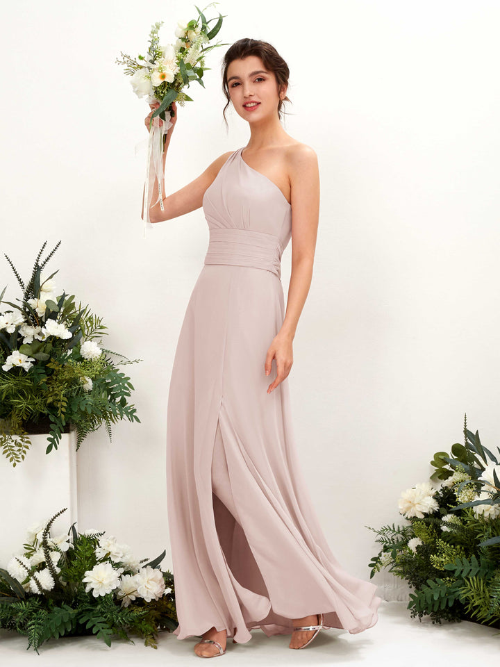 Carlyna Trita Sheath Champagne Rose Bridesmaid Dress Maxi Sleeveless One Shoulder Dress Front View