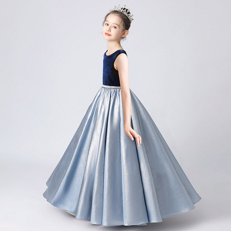 Make every special occasion unforgettable with this adorable navy blue flower girl dress, featuring a cute and playful A-line silhouette. The soft velvet and satin fabrics offer a luxurious touch, complemented by dazzling sequin and bead embellishments for extra sparkle. Designed with a classic round neck and convenient zipper closure, this maxi/floor-length dress is perfect for parties, weddings, celebrations, photo shoots, and performances. Tailored for girls aged 3-12, it ensures a perfect blend of elegance and comfort, making your little one shine as she twirls and smiles.