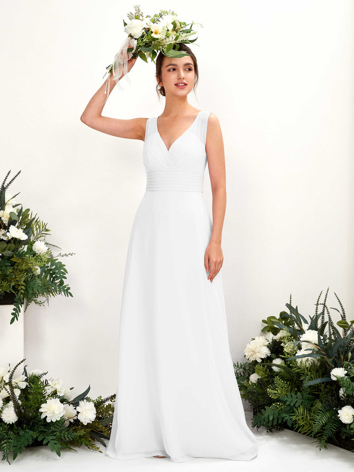 Carlyna Karen A-Line White Bridesmaid Dress Maxi Sleeveless V-Neck Dress Front View