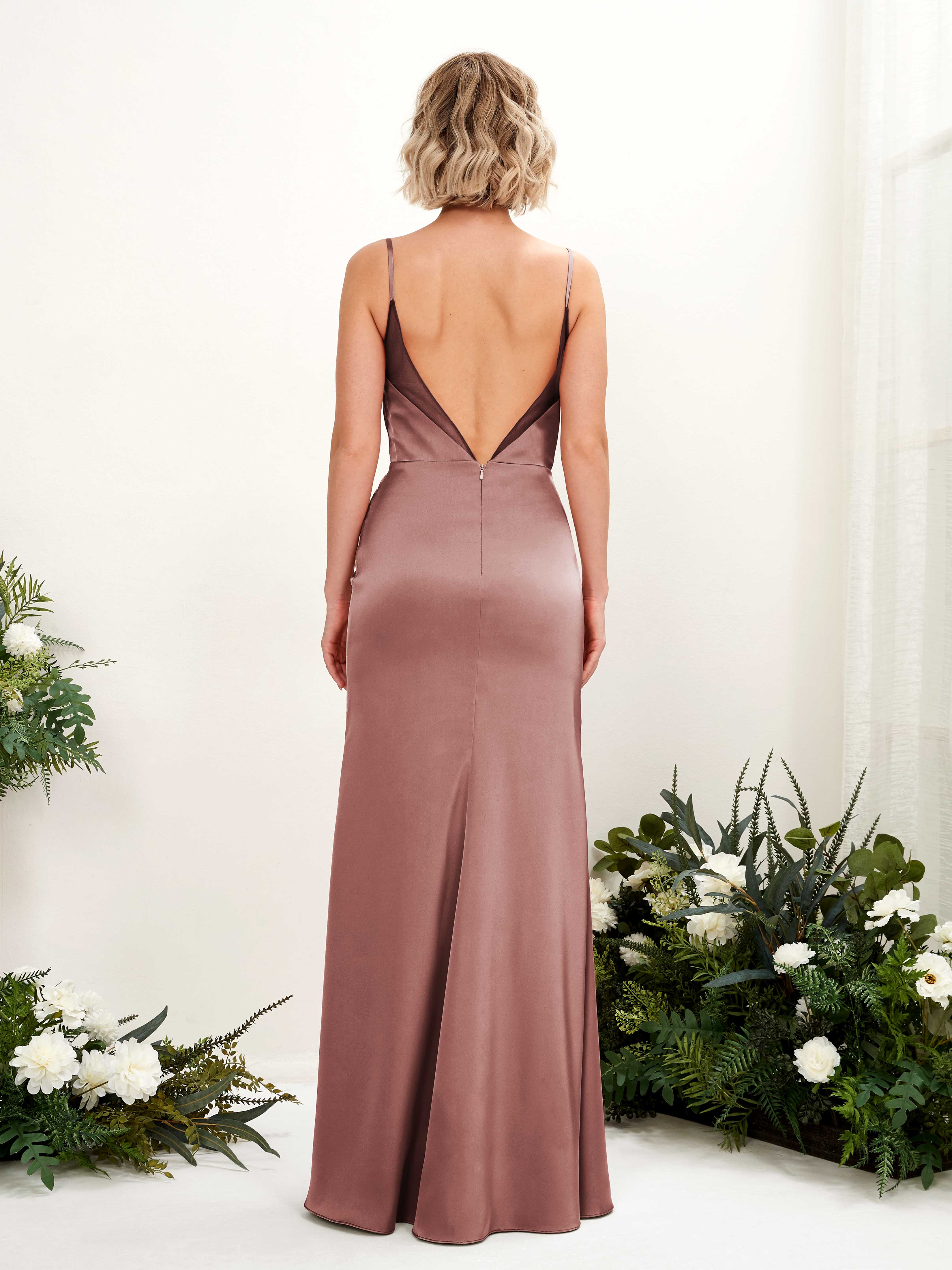 Carlyna Letitia Mermaid Desert Rose Satin Bridesmaid Dress Maxi Sleeveless V-Neck Dress Back View