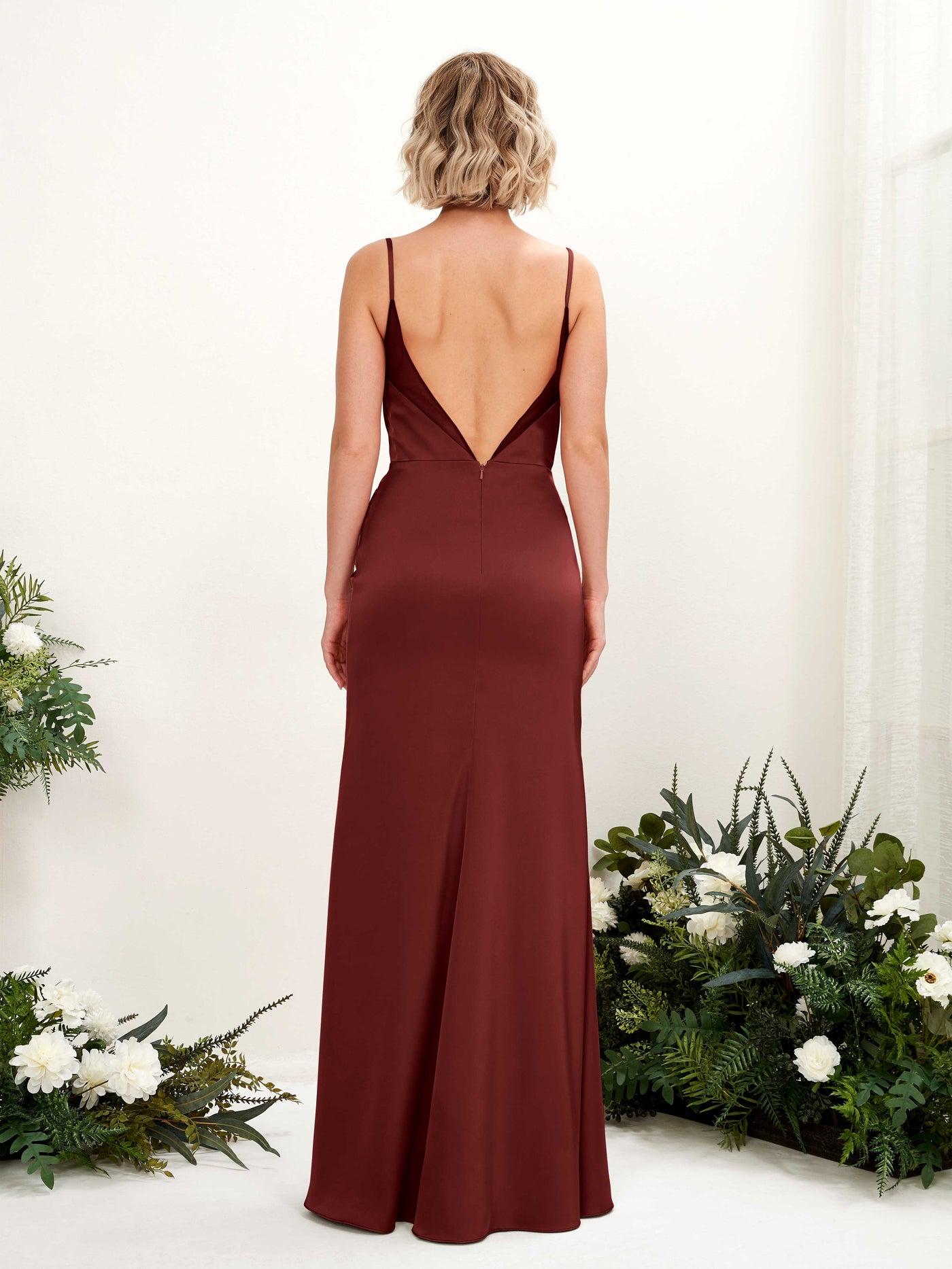 Carlyna Letitia Mermaid Burgundy Satin Bridesmaid Dress Maxi Sleeveless V-Neck Dress Back View