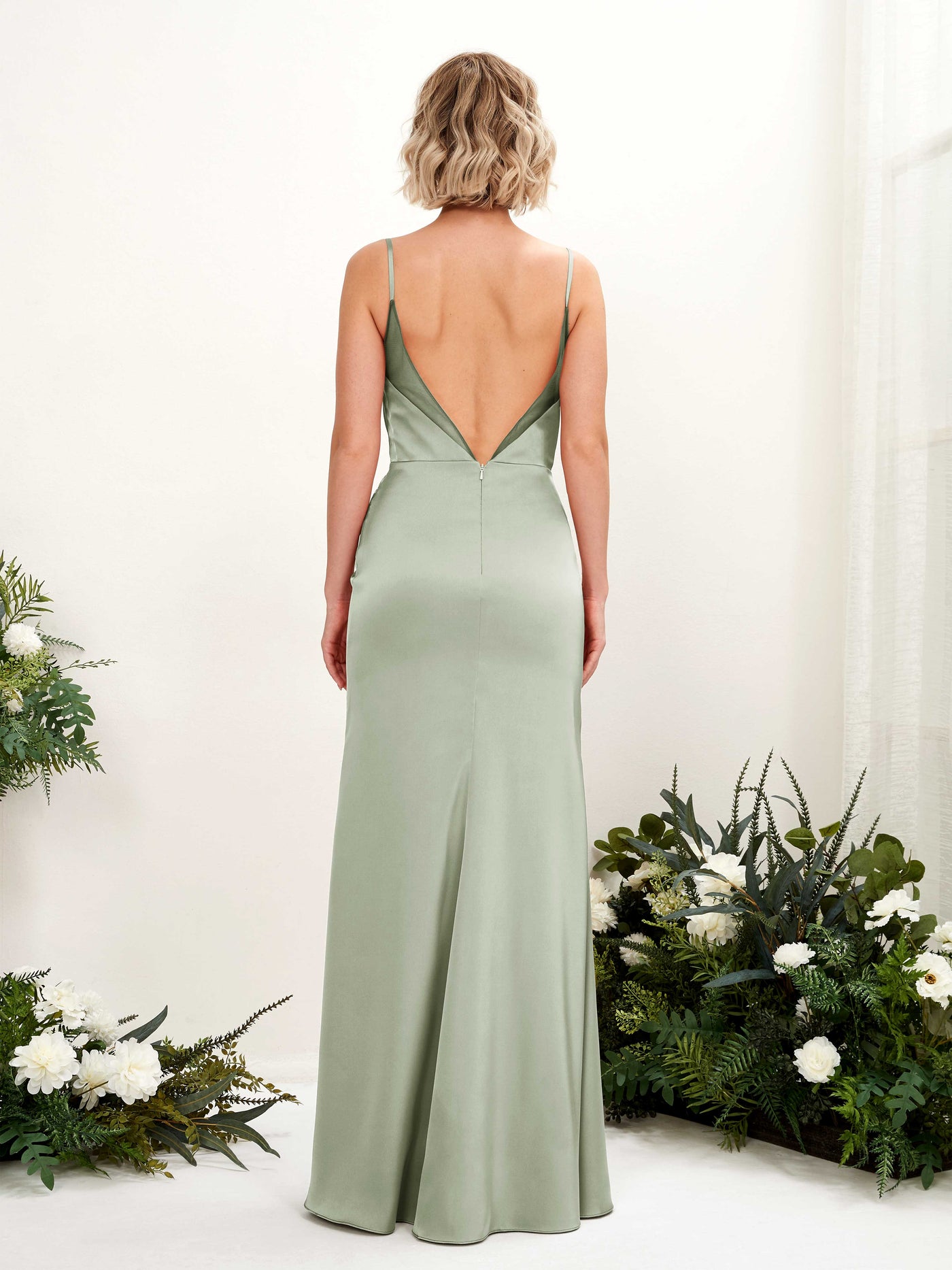 Carlyna Letitia Mermaid Sage Green Satin Bridesmaid Dress Maxi Sleeveless V-Neck Dress Back View