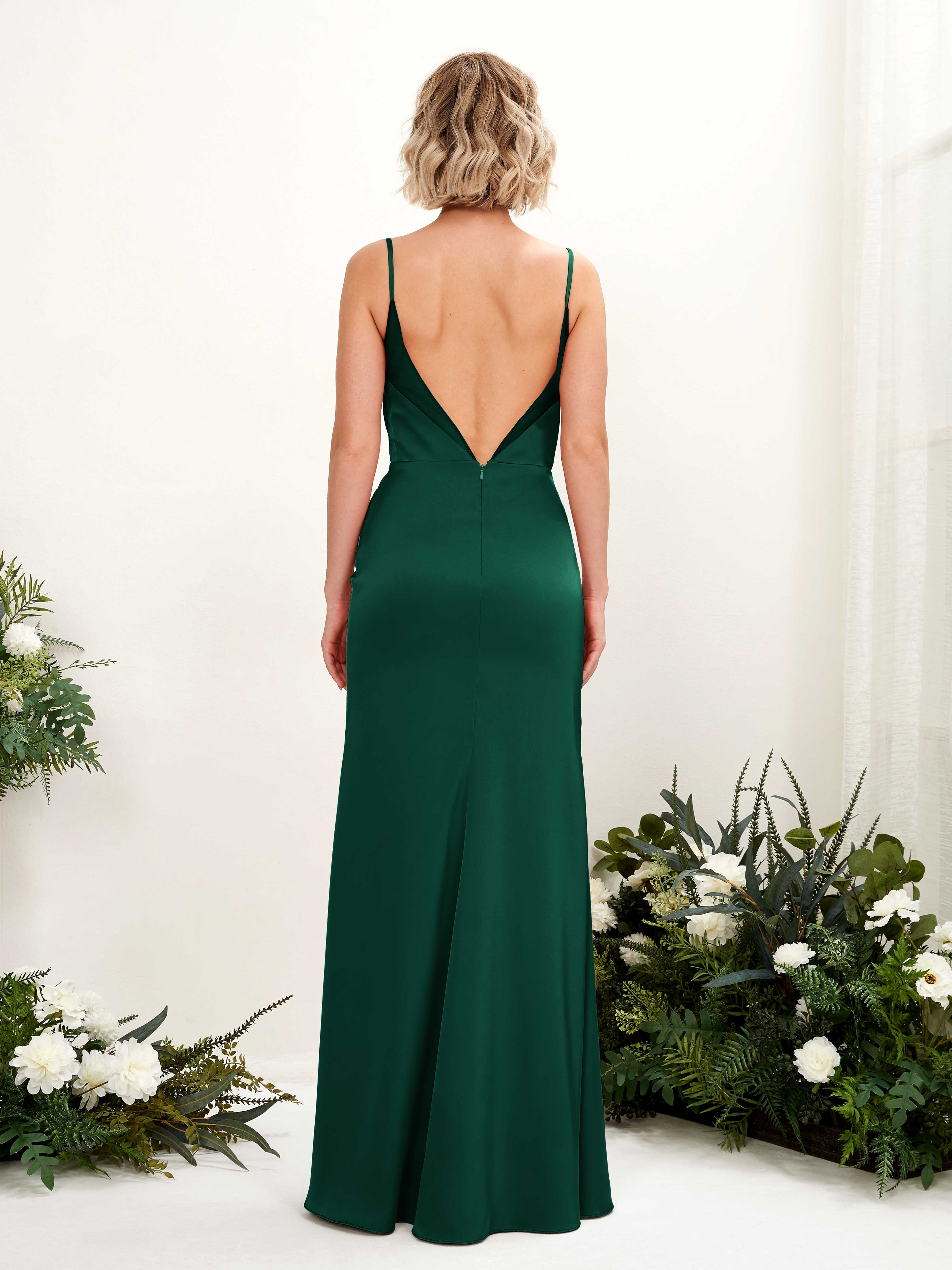 Carlyna Letitia Mermaid Hunter Green Satin Bridesmaid Dress Maxi Sleeveless V-Neck Dress Back View