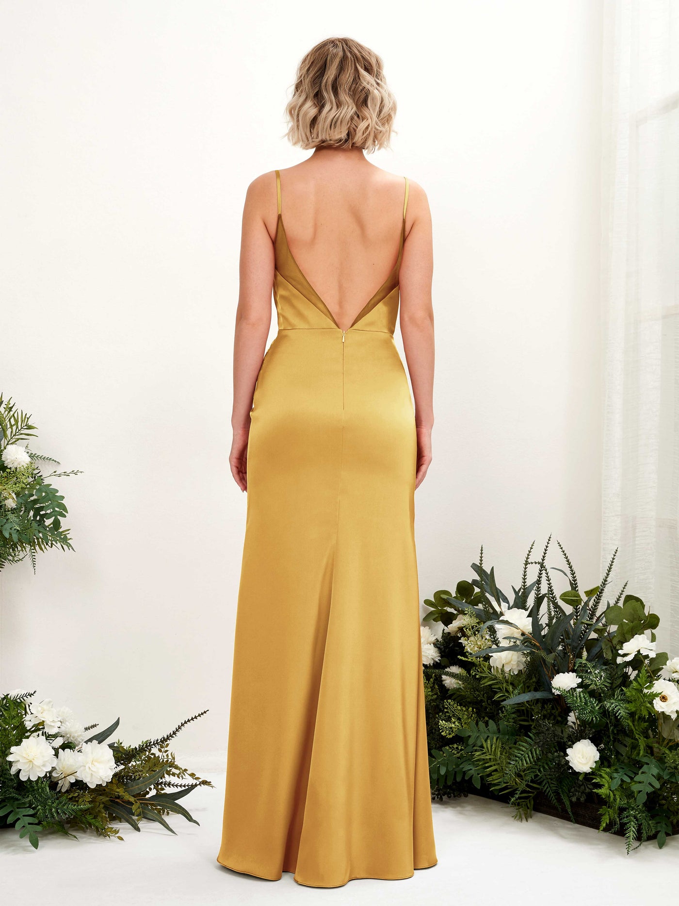 Carlyna Letitia Mermaid Canary Satin Bridesmaid Dress Maxi Sleeveless V-Neck Dress Back View