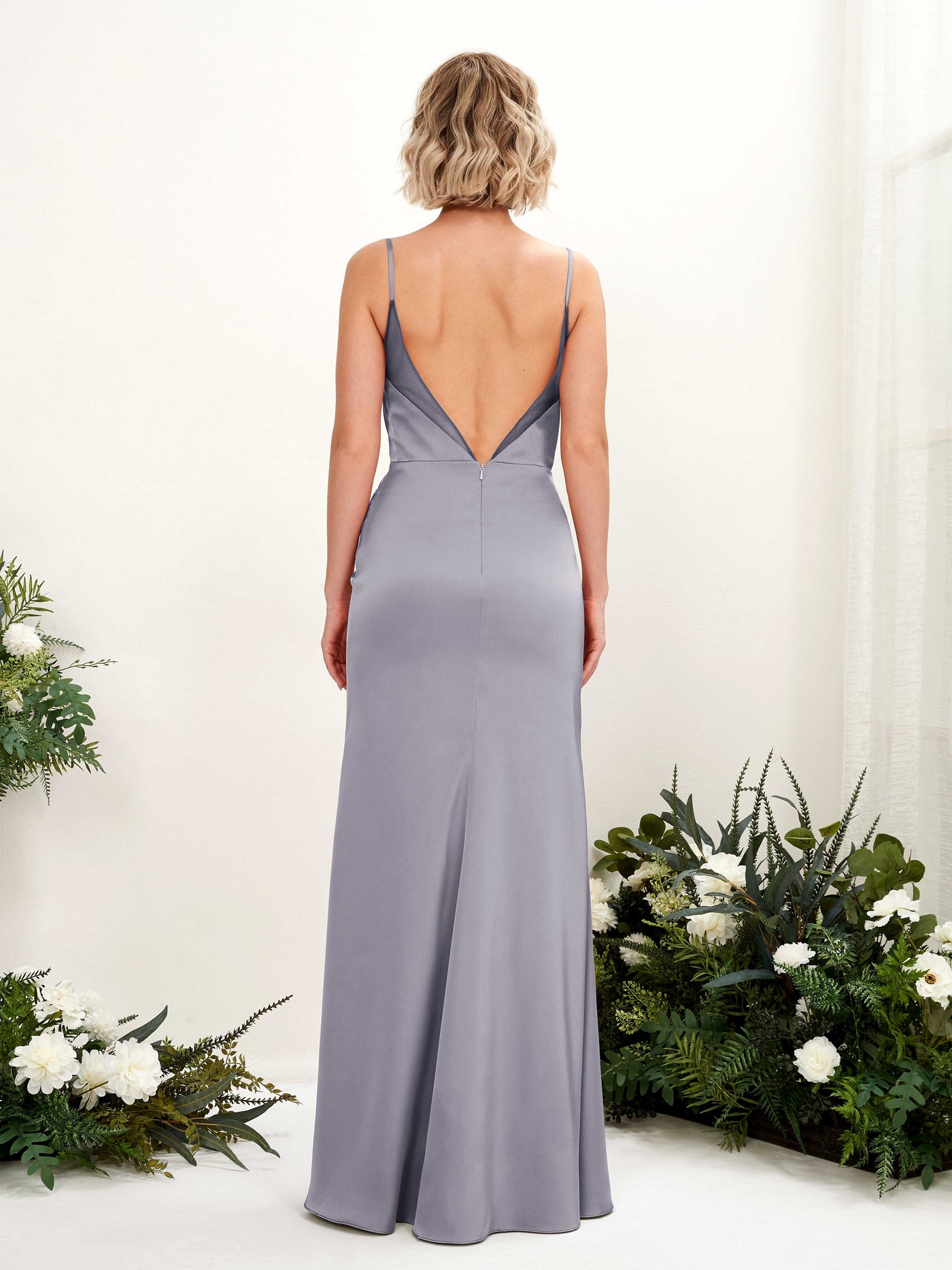 Carlyna Letitia Mermaid Steel Gray Satin Bridesmaid Dress Maxi Sleeveless V-Neck Dress Back View