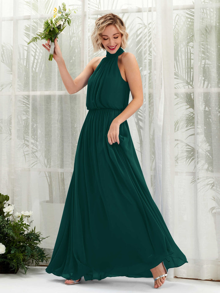 Dark Emerald Chiffon A-Line Round Neck Maxi Dress