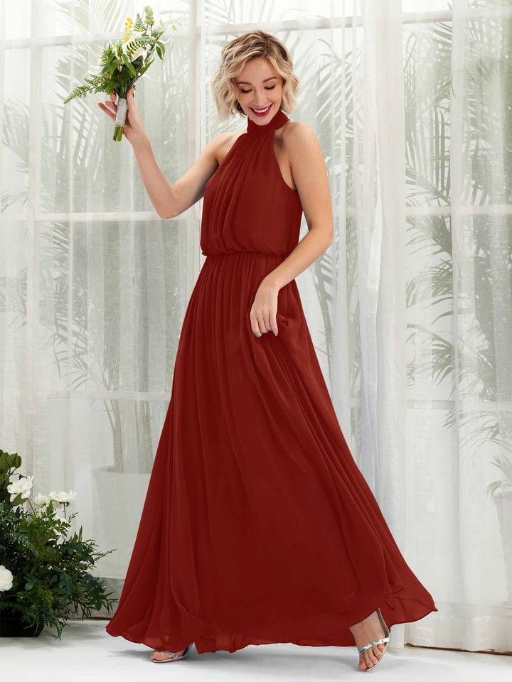 Rust Chiffon A-Line Round Neck Maxi Dress
