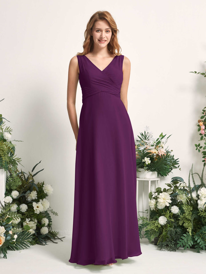 Grape Chiffon A-Line V-Neck Maxi Dress
