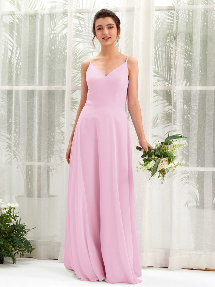 Candy Pink Chiffon A-Line V-Neck Open Back Maxi Dress
