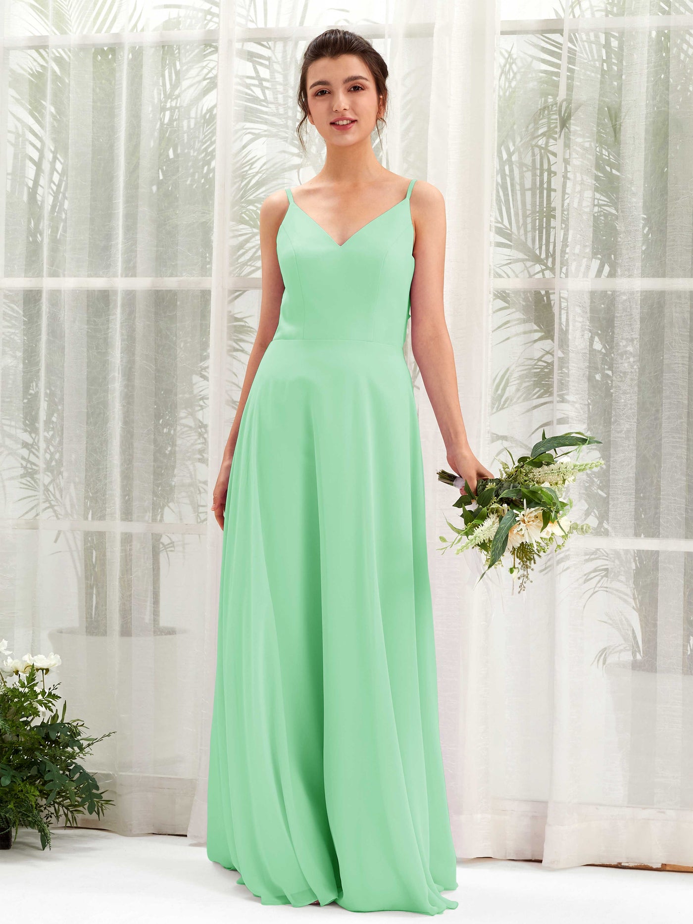 Carlyna Elsa A-Line Mint Green Bridesmaid Dress Maxi Sleeveless V-Neck Dress Front View