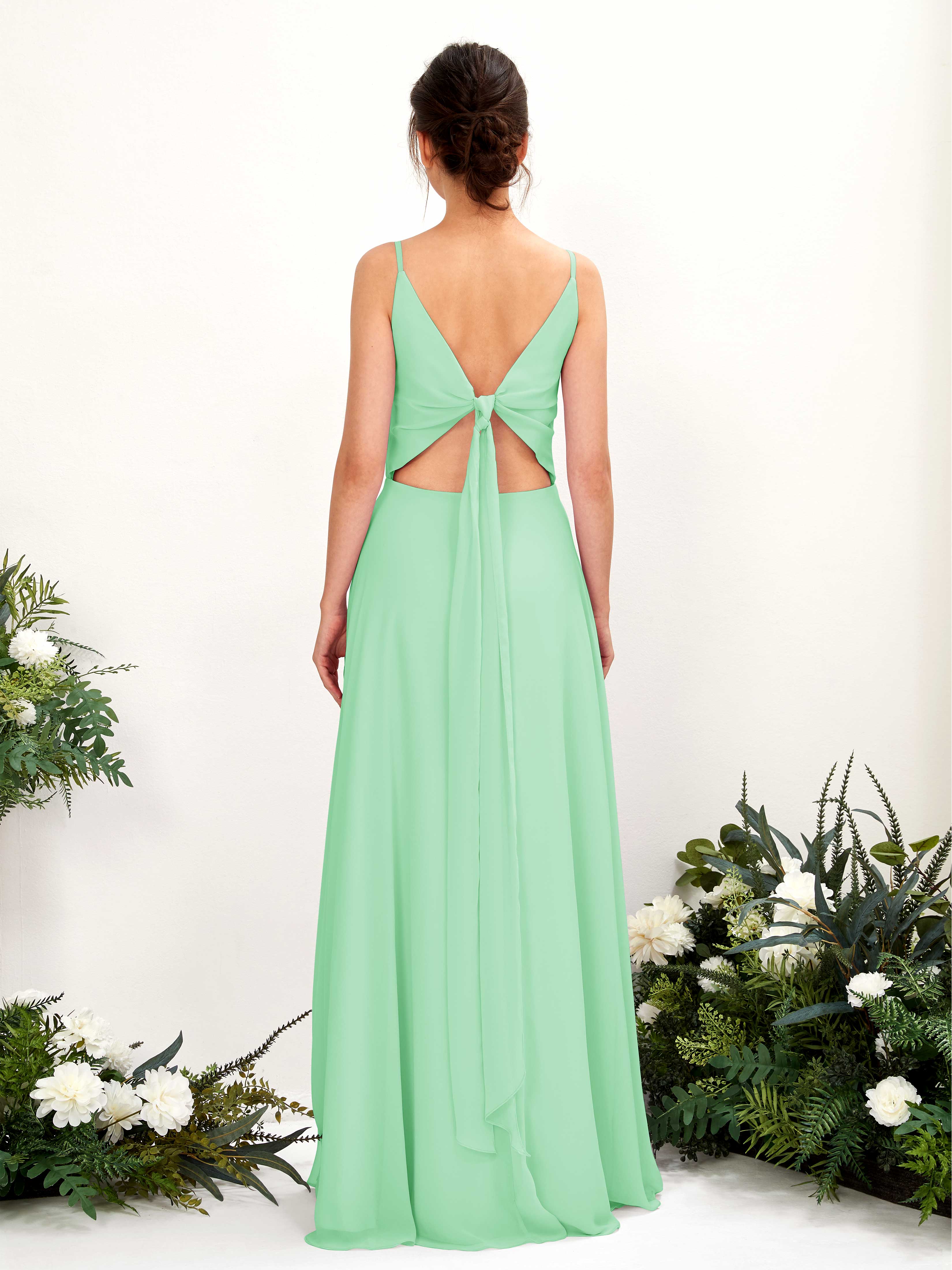 Carlyna Elsa A-Line Mint Green Bridesmaid Dress Maxi Sleeveless V-Neck Dress Back View