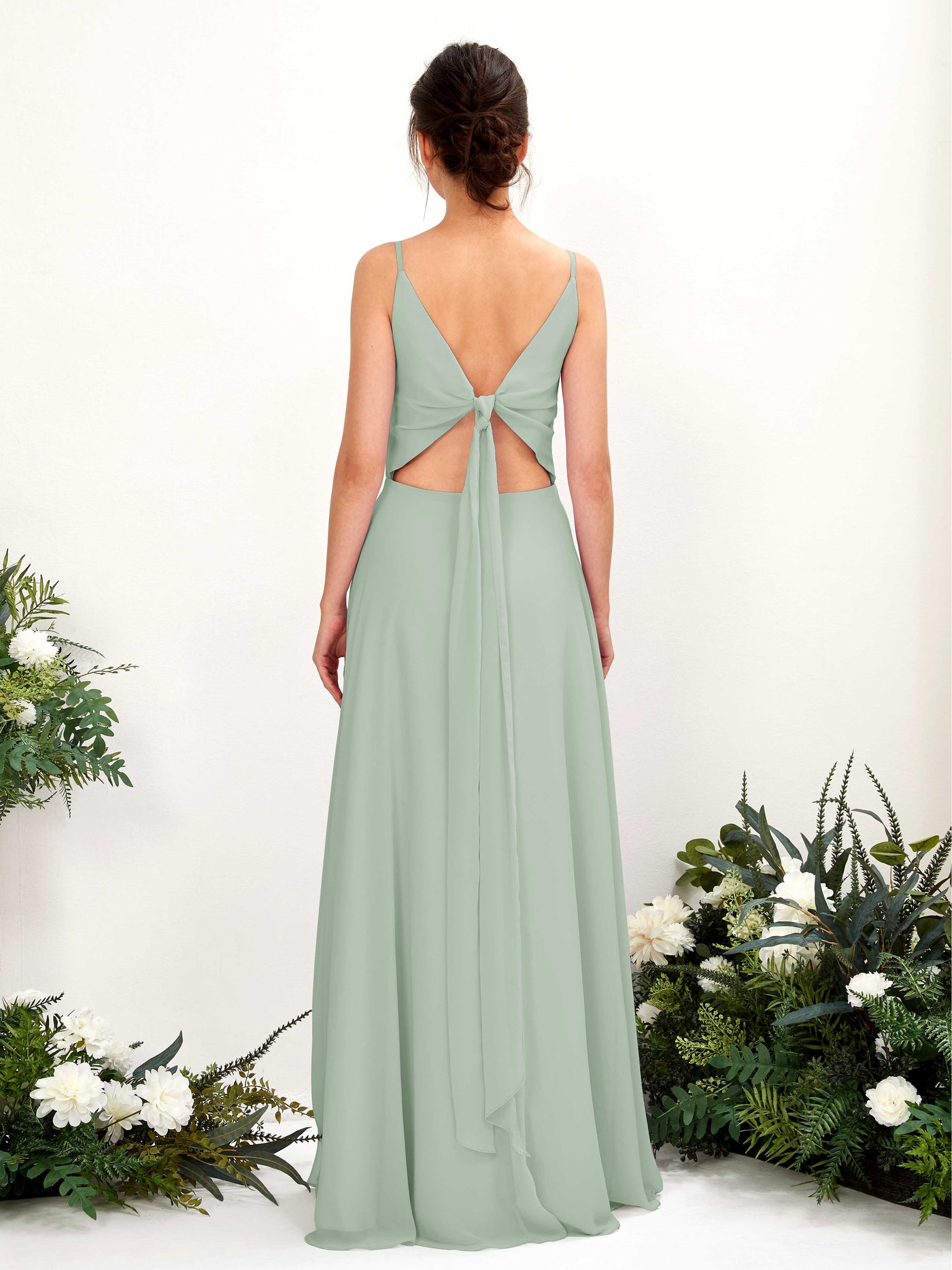 Carlyna Elsa A-Line Sage Green Bridesmaid Dress Maxi Sleeveless V-Neck Dress Back View
