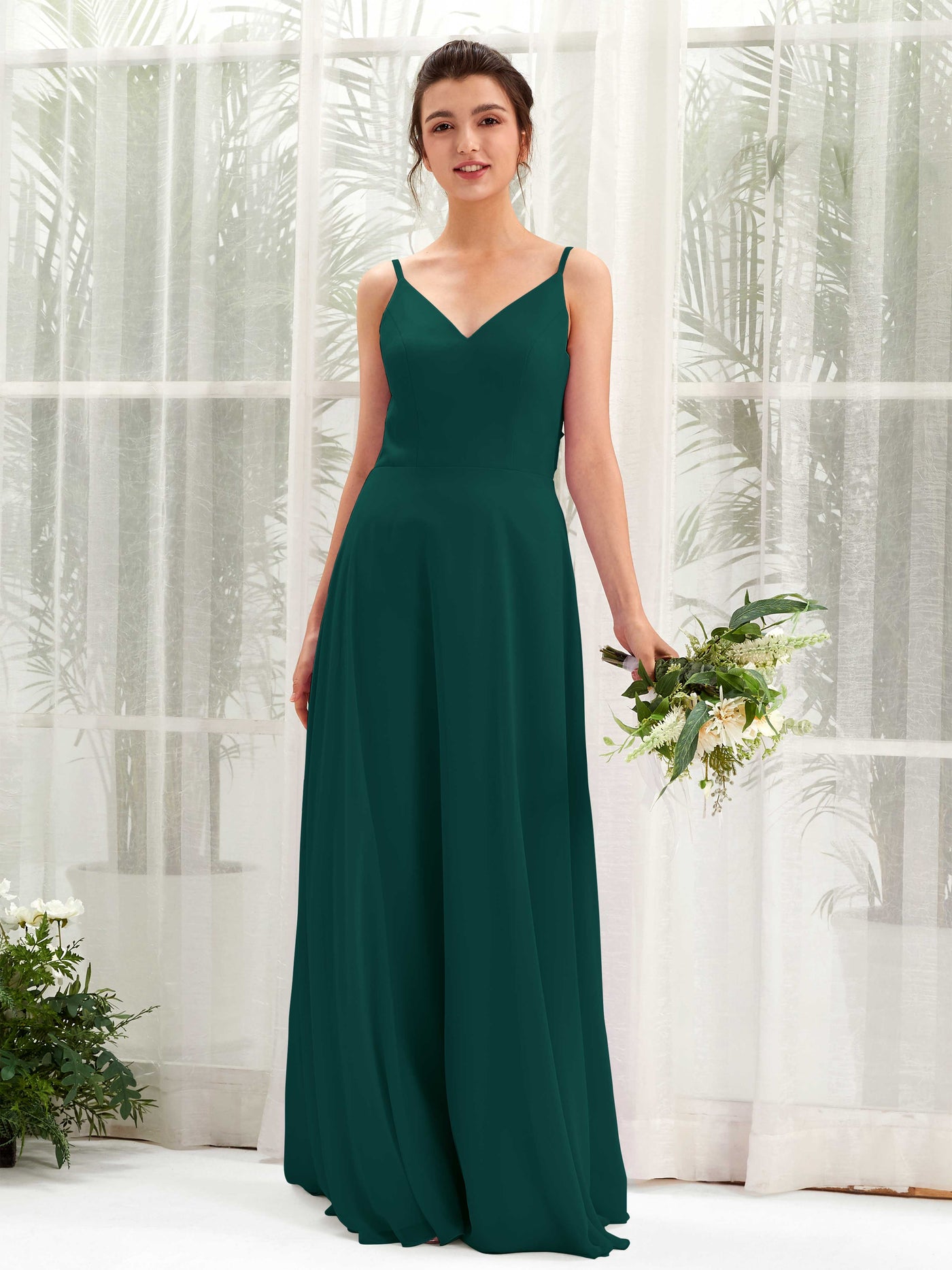 Carlyna Elsa A-Line Dark Emerald Bridesmaid Dress Maxi Sleeveless V-Neck Dress Front View