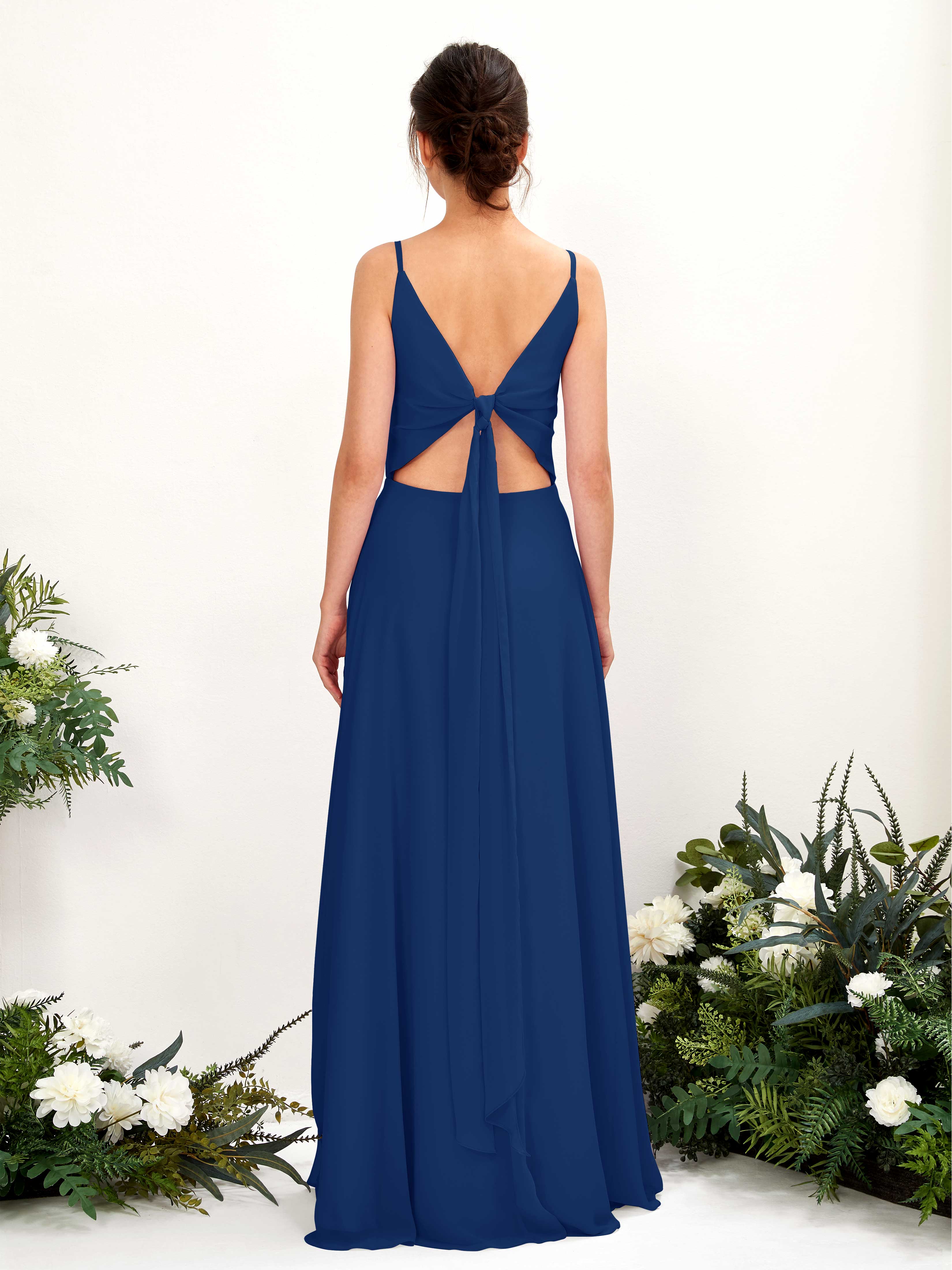 Carlyna Elsa A-Line Royal Blue Bridesmaid Dress Maxi Sleeveless V-Neck Dress Back View