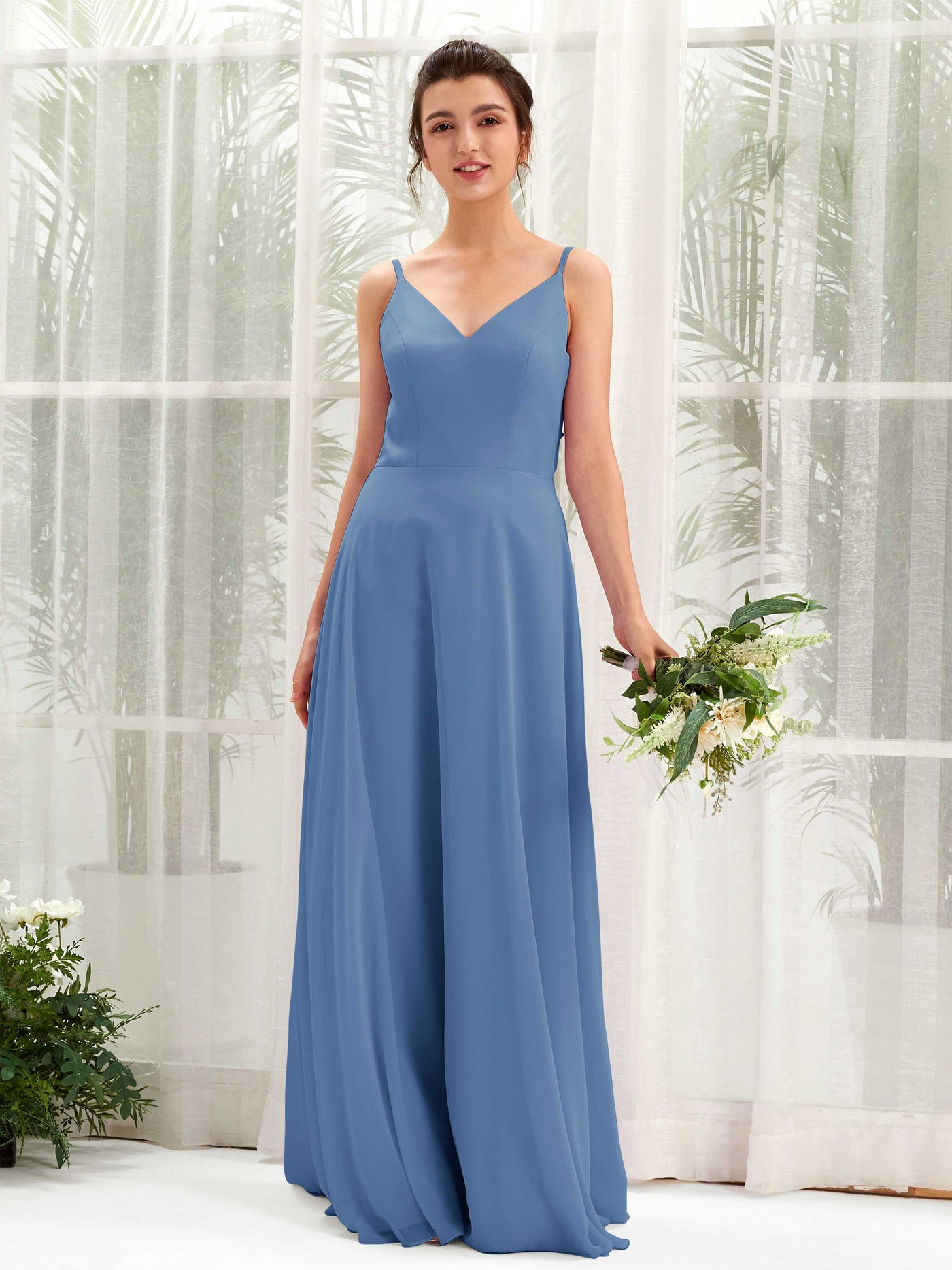 Carlyna Elsa A-Line Dusty Blue Bridesmaid Dress Maxi Sleeveless V-Neck Dress Front View