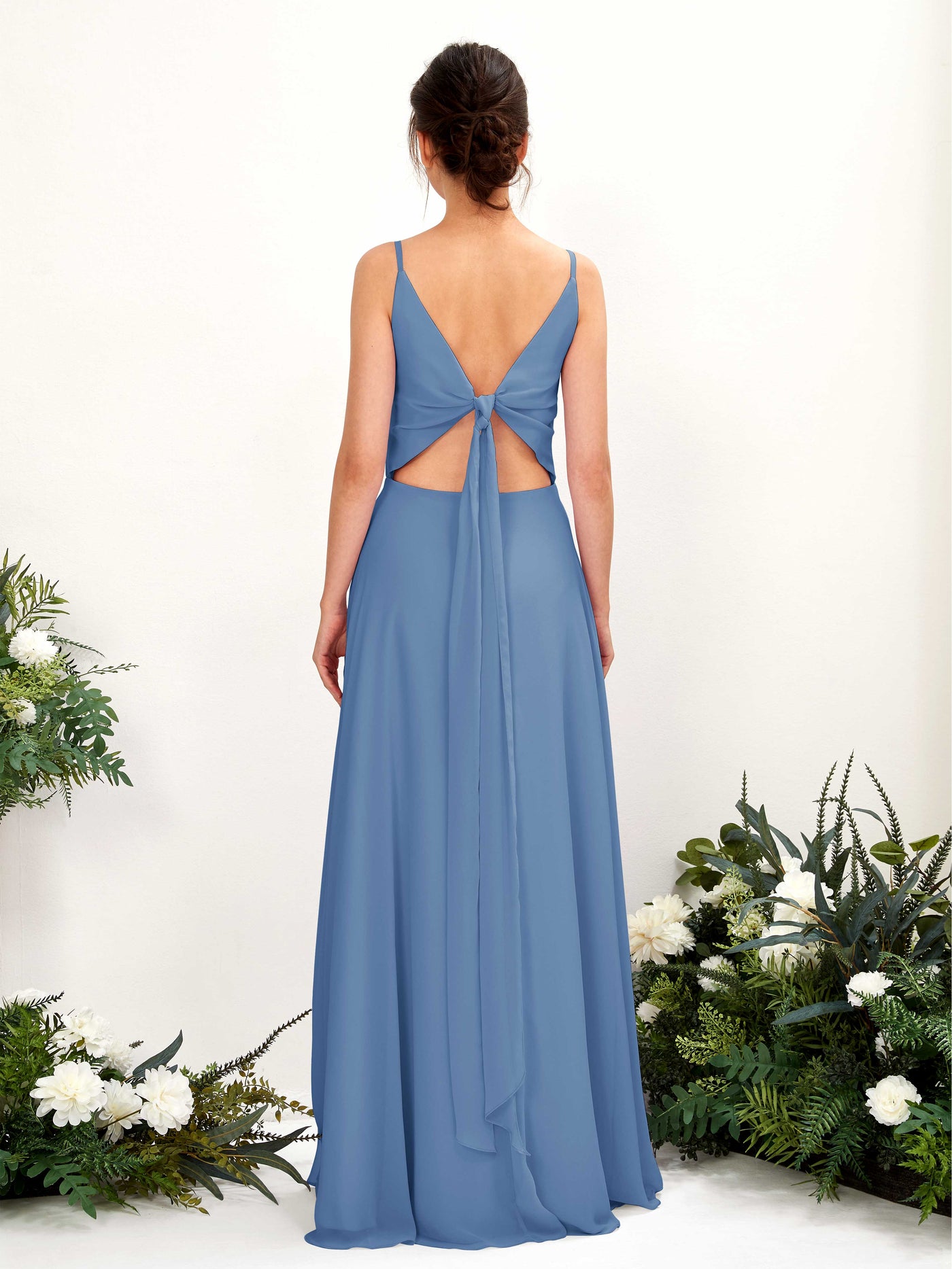 Carlyna Elsa A-Line Dusty Blue Bridesmaid Dress Maxi Sleeveless V-Neck Dress Back View