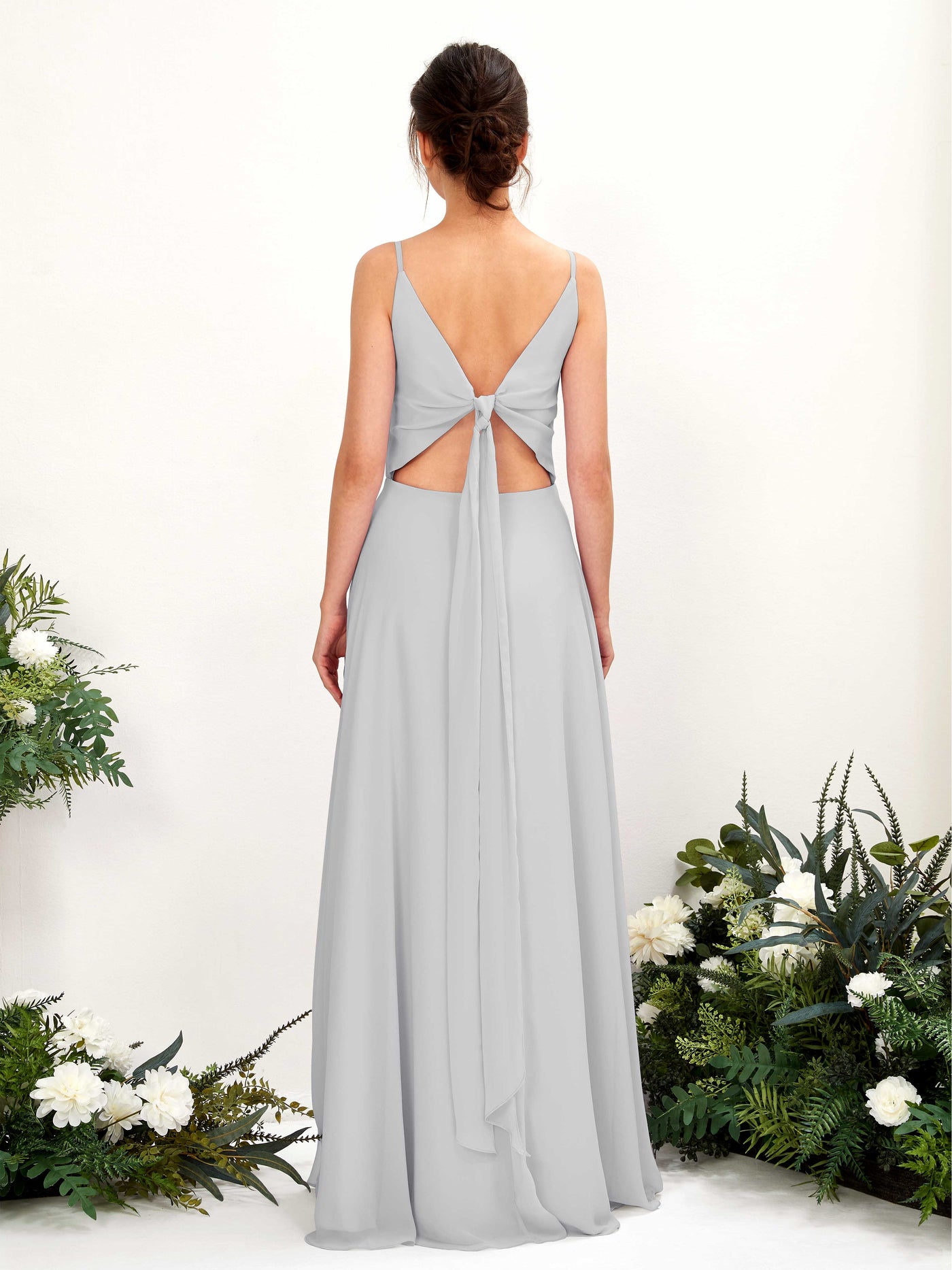 Carlyna Elsa A-Line Silver Bridesmaid Dress Maxi Sleeveless V-Neck Dress Back View