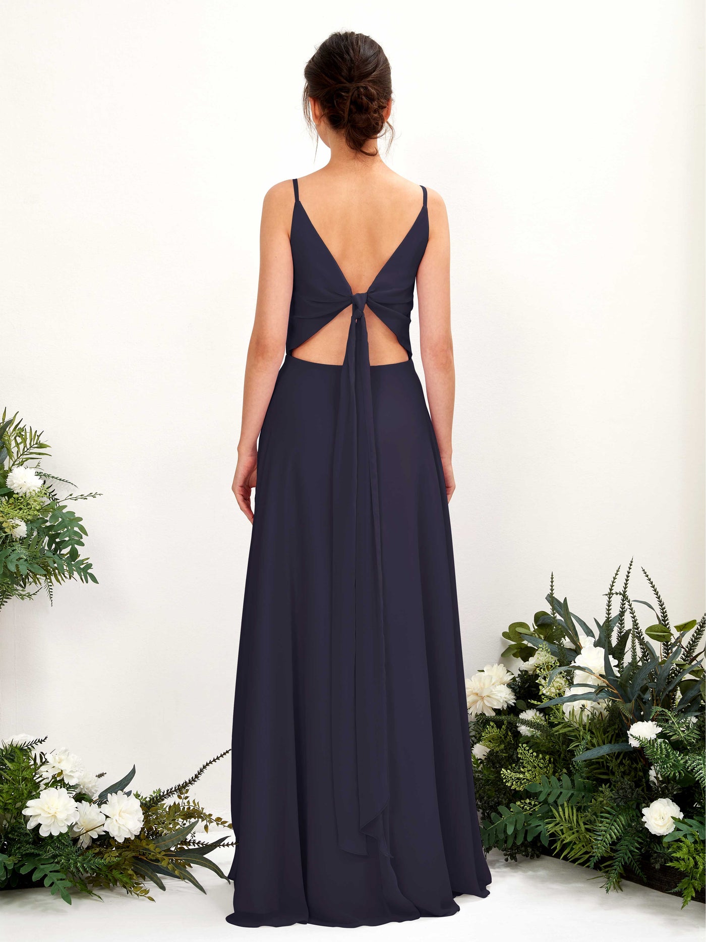 Carlyna Elsa A-Line Dark Navy Bridesmaid Dress Maxi Sleeveless V-Neck Dress Back View