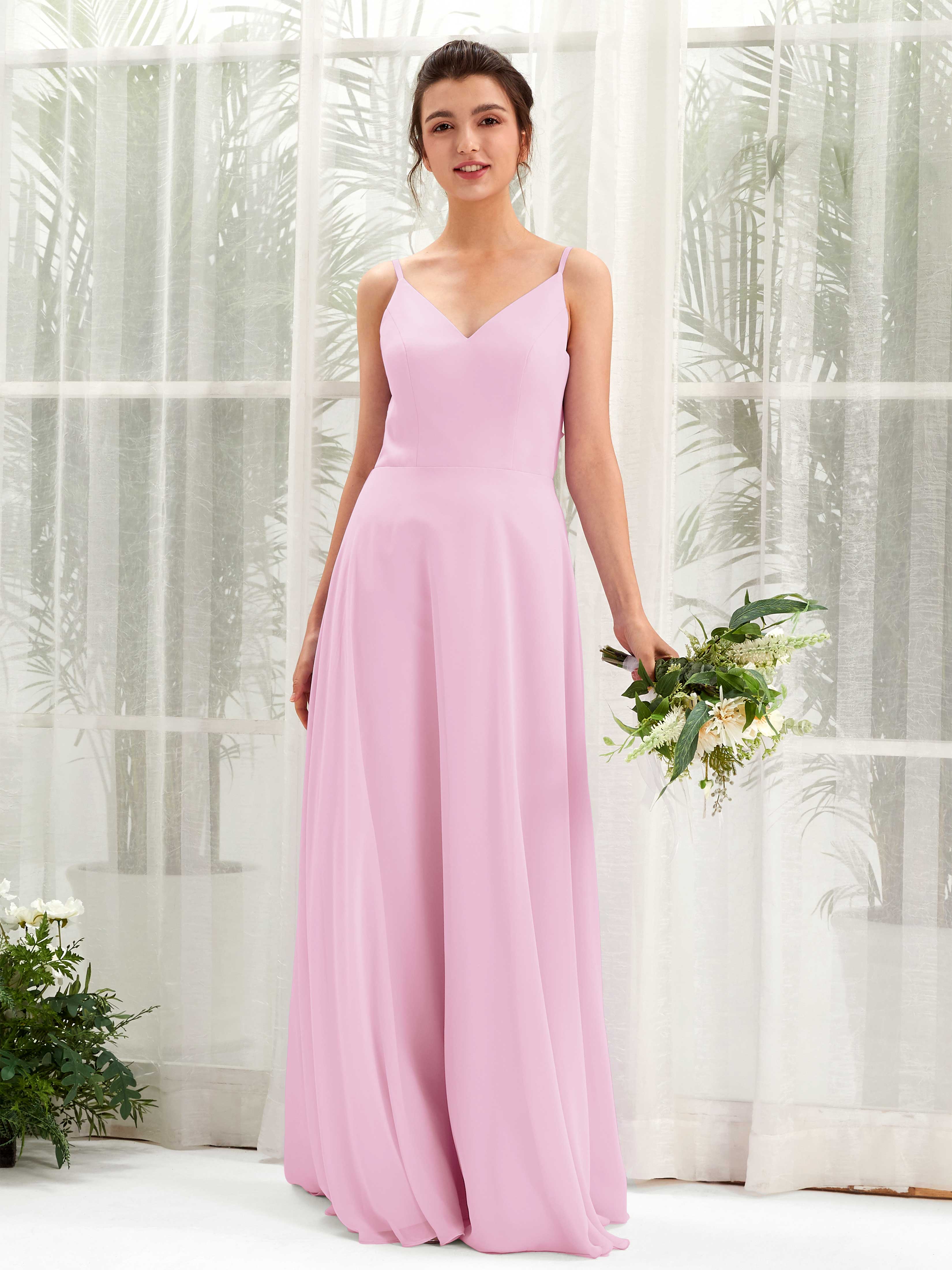 Carlyna Elsa A-Line Ballet Pink Bridesmaid Dress Maxi Sleeveless V-Neck Dress Front View