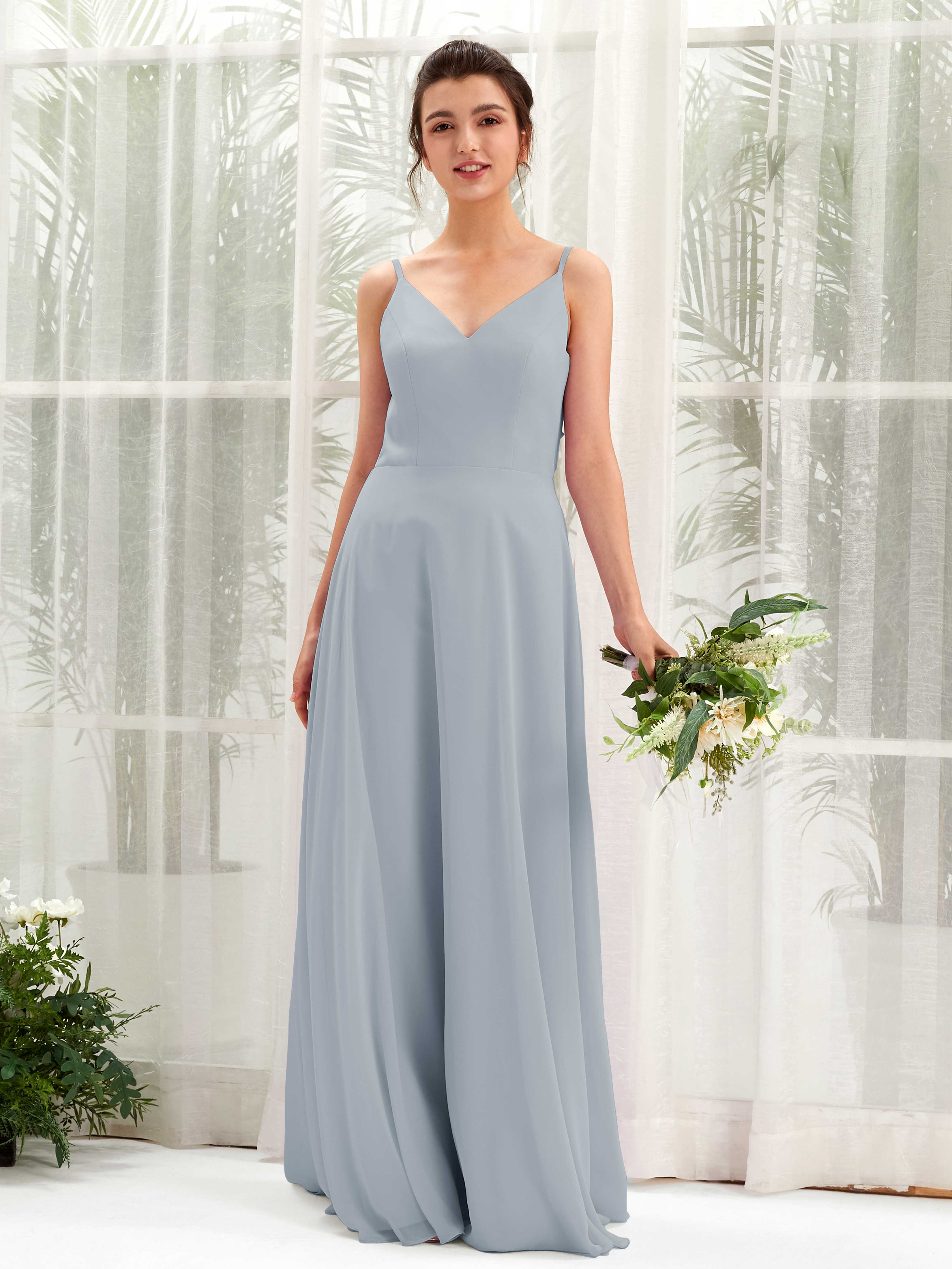 Carlyna Elsa A-Line Dove Bridesmaid Dress Maxi Sleeveless V-Neck Dress Front View